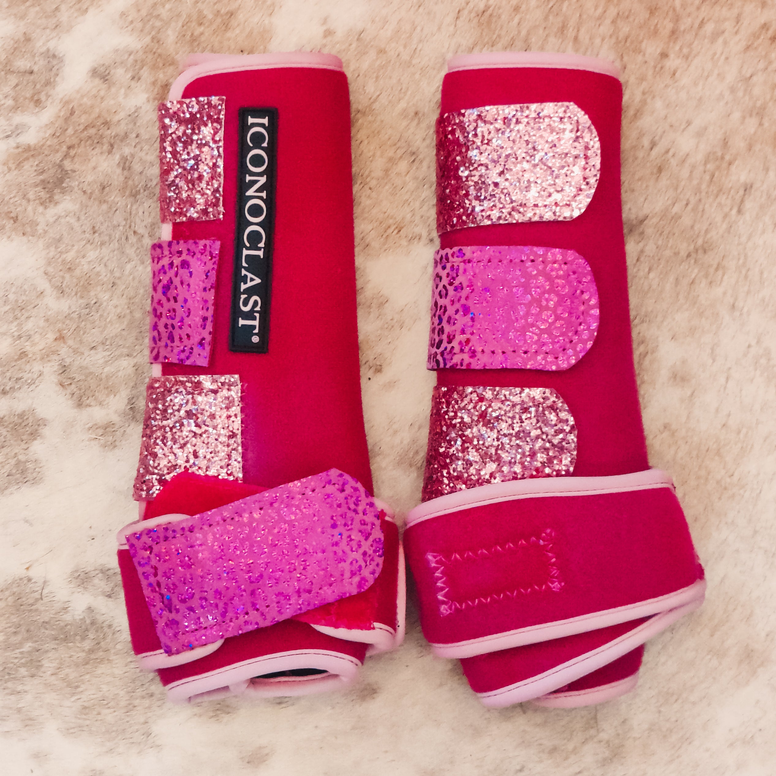 Pink Holographic Cheetah Custom Leather Strap Iconoclast Boots