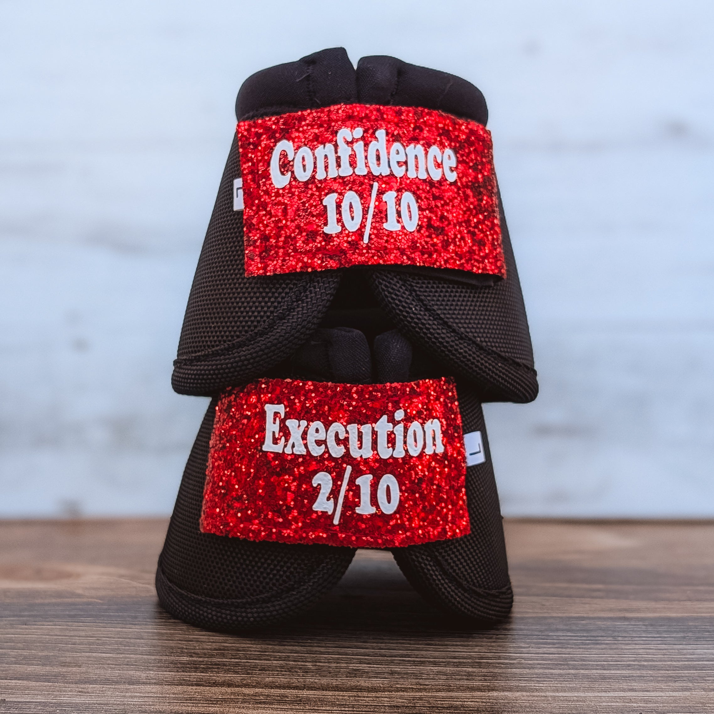 PLEASE NOTE - The wording will be either black or white depending upon which color stands out better against the glitter color you select. At this time ONLY black and white writing is available for made to order bells. Black and white bell boots will be Iconoclast brand. Colored bells will be Weaver brand.