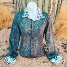 Why are our TGC button downs a must have? Not only are they bold and unique, just like you, but they are also extremely comfortable. They are made out of a lightweight, breathable stretch satin that is comfortable to wear year round and feels like wearing a pajama top. The subtle sheen makes it gorgeous in photos without the fabric looking cheap and shiny. We included extra length in the body so it always stays tucked regardless of your torso length and how far forward you move your arms when pushing your horse home or throwing a rope.