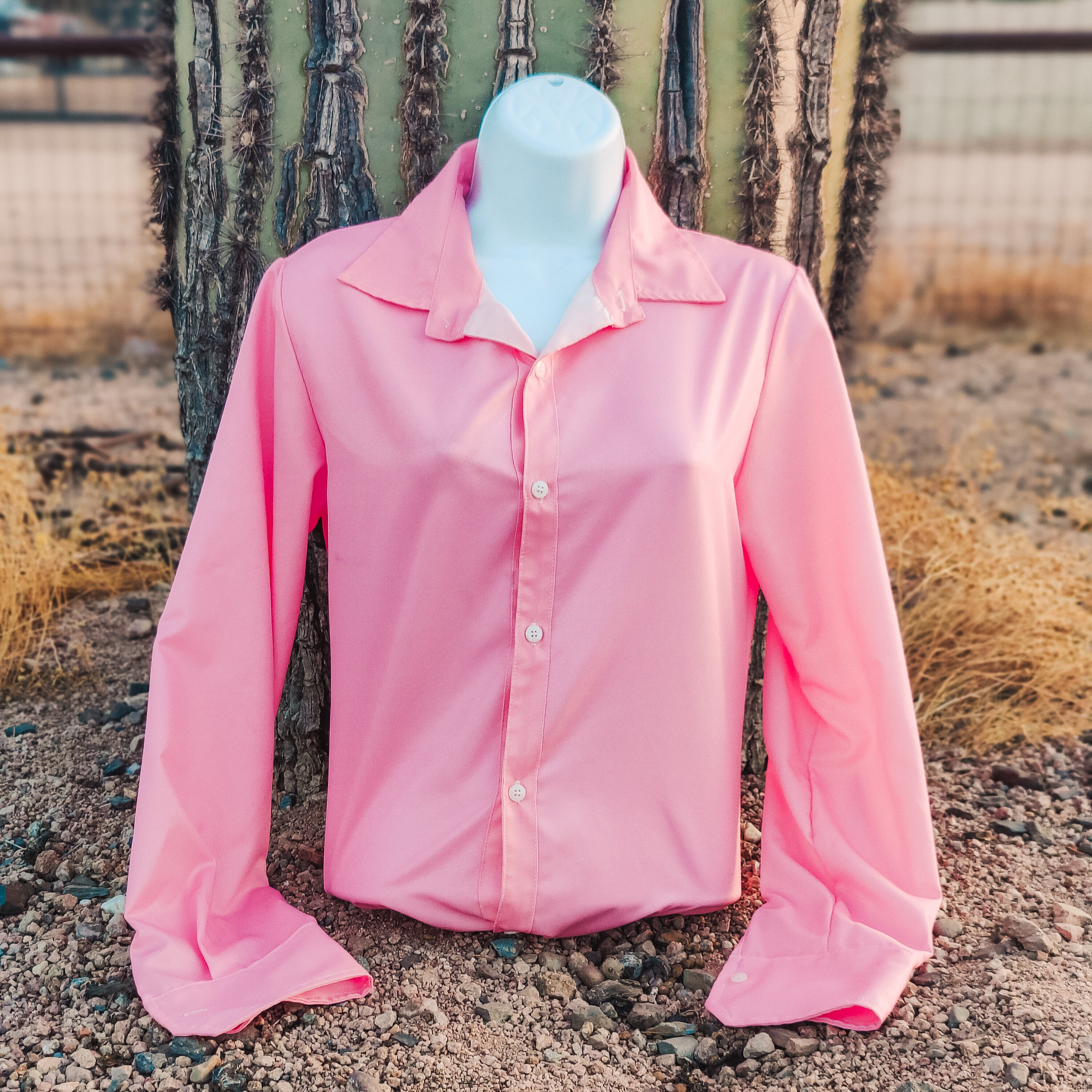 Why are our TGC button downs a must have? Not only are they bold and unique, just like you, but they are also extremely comfortable. They are made out of a lightweight, breathable stretch satin that is comfortable to wear year round and feels like wearing a pajama top. The subtle sheen makes it gorgeous in photos without the fabric looking cheap and shiny. We included extra length in the body so it always stays tucked regardless of your torso length and how far forward you move your arms when pushing your horse home or throwing a rope.
