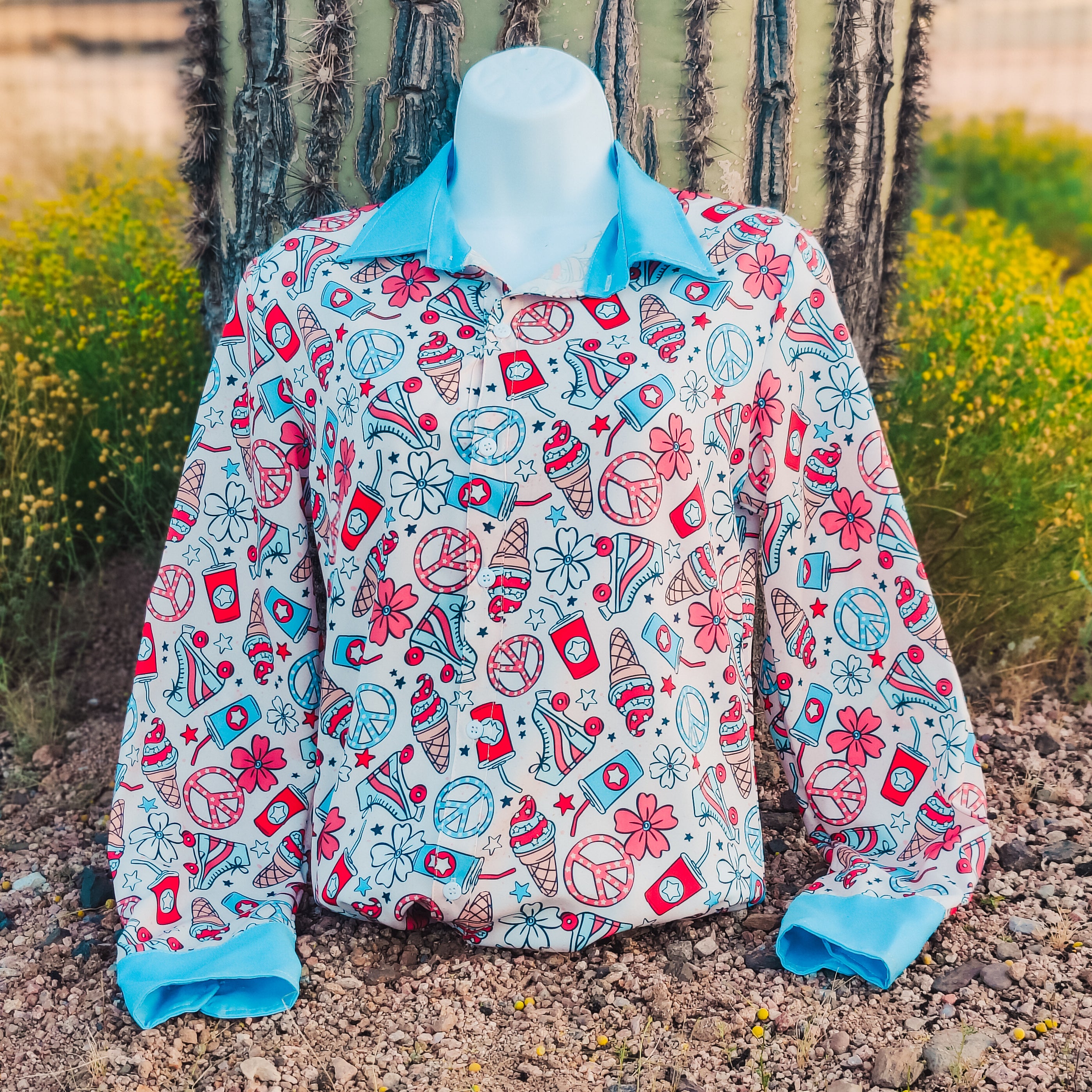 One of our favorite ways to spend the 4th of July holiday is at the beach. There's nothing like spending the days wandering around on the boardwalk eating soft serve and lounging on the sand and spending the nights at the local rodeo. Our At The Boardwalk Button Down is designed to invoke memories of lazy days spent down the ocean.