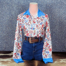 Why are our TGC button downs a must have? Not only are they bold and unique, just like you, but they are also extremely comfortable. They are made out of a lightweight, breathable stretch satin that is comfortable to wear year round and feels like wearing a pajama top. The subtle sheen makes it gorgeous in photos without the fabric looking cheap and shiny. We included extra length in the body so it always stays tucked regardless of your torso length and how far forward you move your arms when pushing your horse home or throwing a rope.