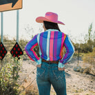 Revive the spirit of the 90s with our Brush Popper Button Downs! Inspired by classic brush poppers, this button-down features striking vertical stripes in a vibrant array of colors, perfectly blending retro charm with contemporary flair. Whether you're roping cattle or running down the alleyway, this versatile shirt promises to be your new go-to.