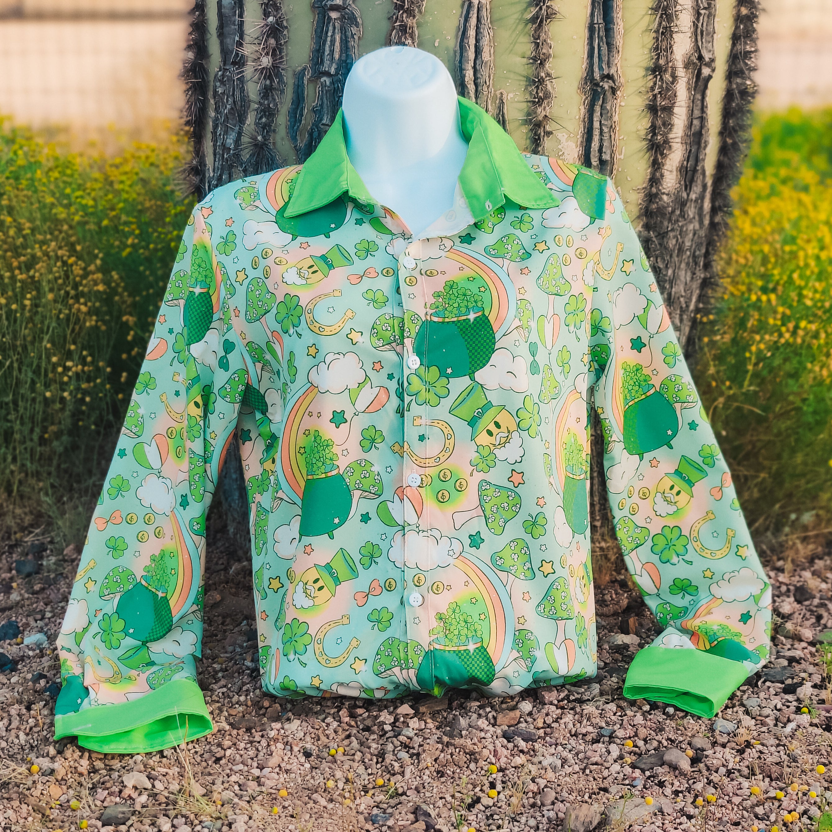 Why are our TGC button downs a must have? Not only are they bold and unique, just like you, but they are also extremely comfortable. They are made out of a lightweight, breathable stretch satin that is comfortable to wear year round and feels like wearing a pajama top. The subtle sheen makes it gorgeous in photos without the fabric looking cheap and shiny. We included extra length in the body so it always stays tucked regardless of your torso length and how far forward you move your arms when pushing your horse home or throwing a rope.