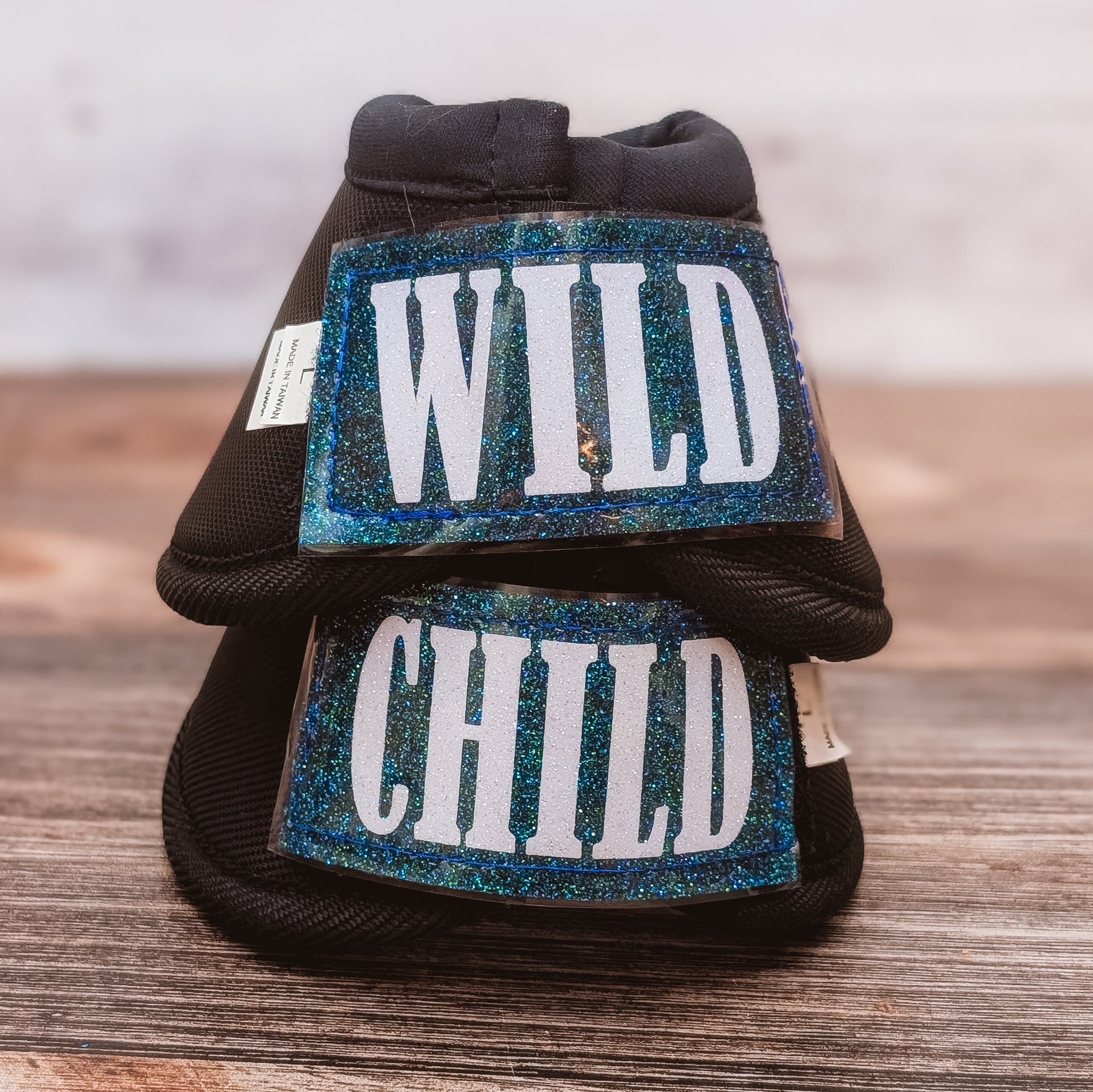 Large Black "Wild Child" Bells w/ Turquoise Glitter Straps