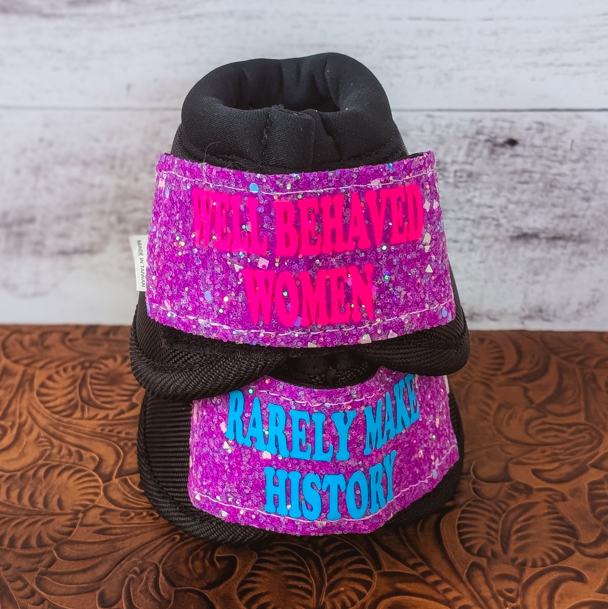Medium Black "Well Behaved Women" Bells w/ Neon Purple Glitter Straps