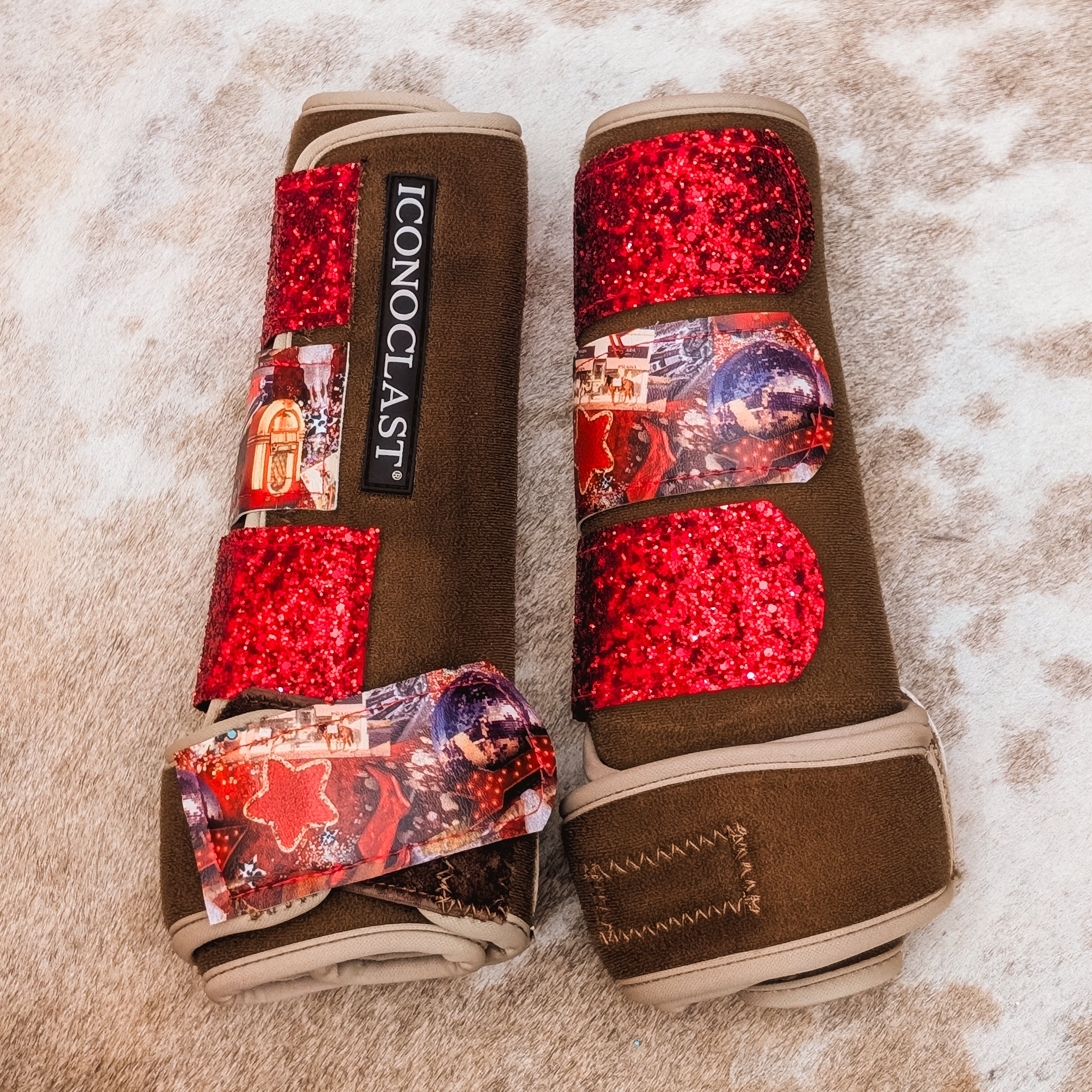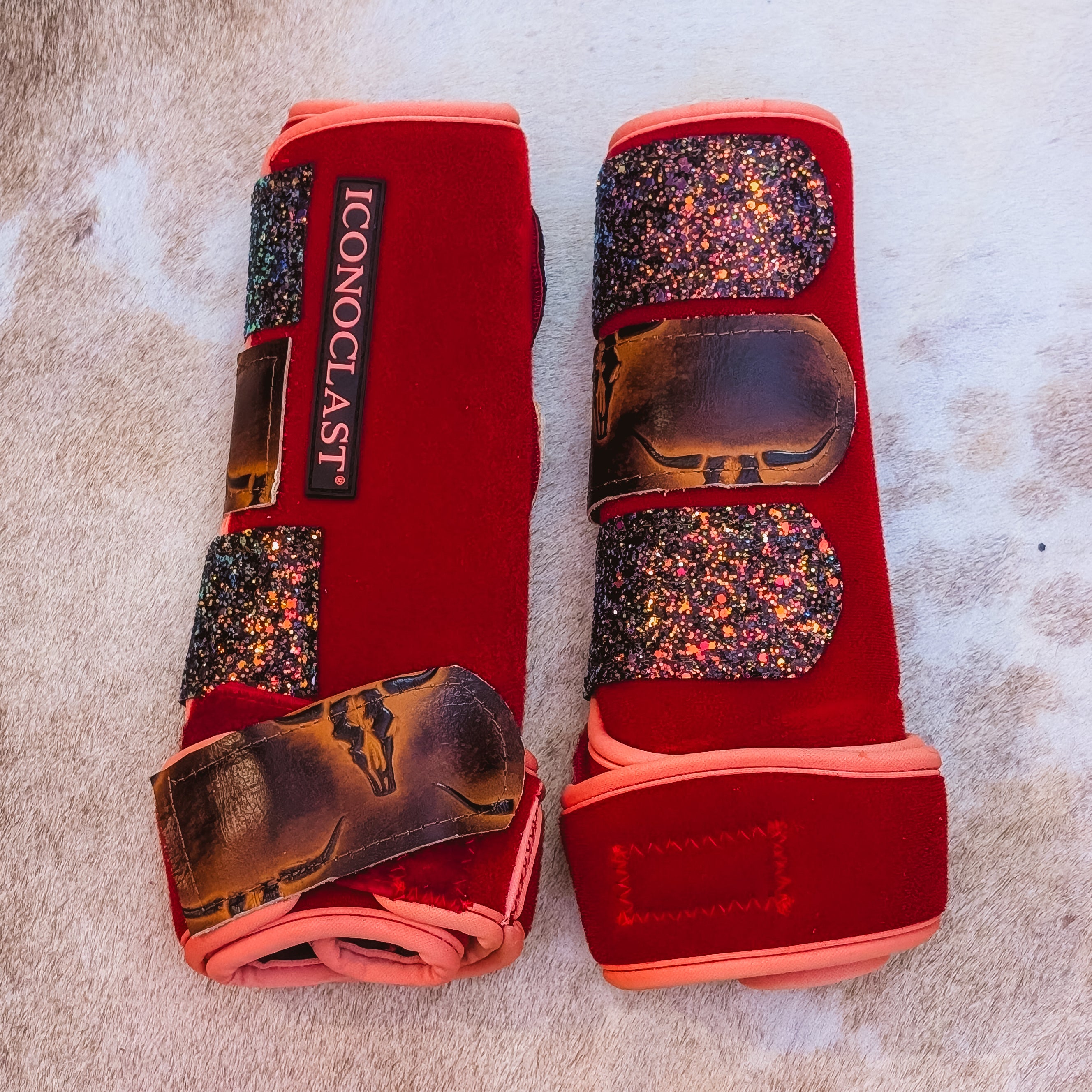 Medium Red Dip Dyed Iconoclast Fronts w/ Red Laredo Leather and Galaxy Glitter Straps