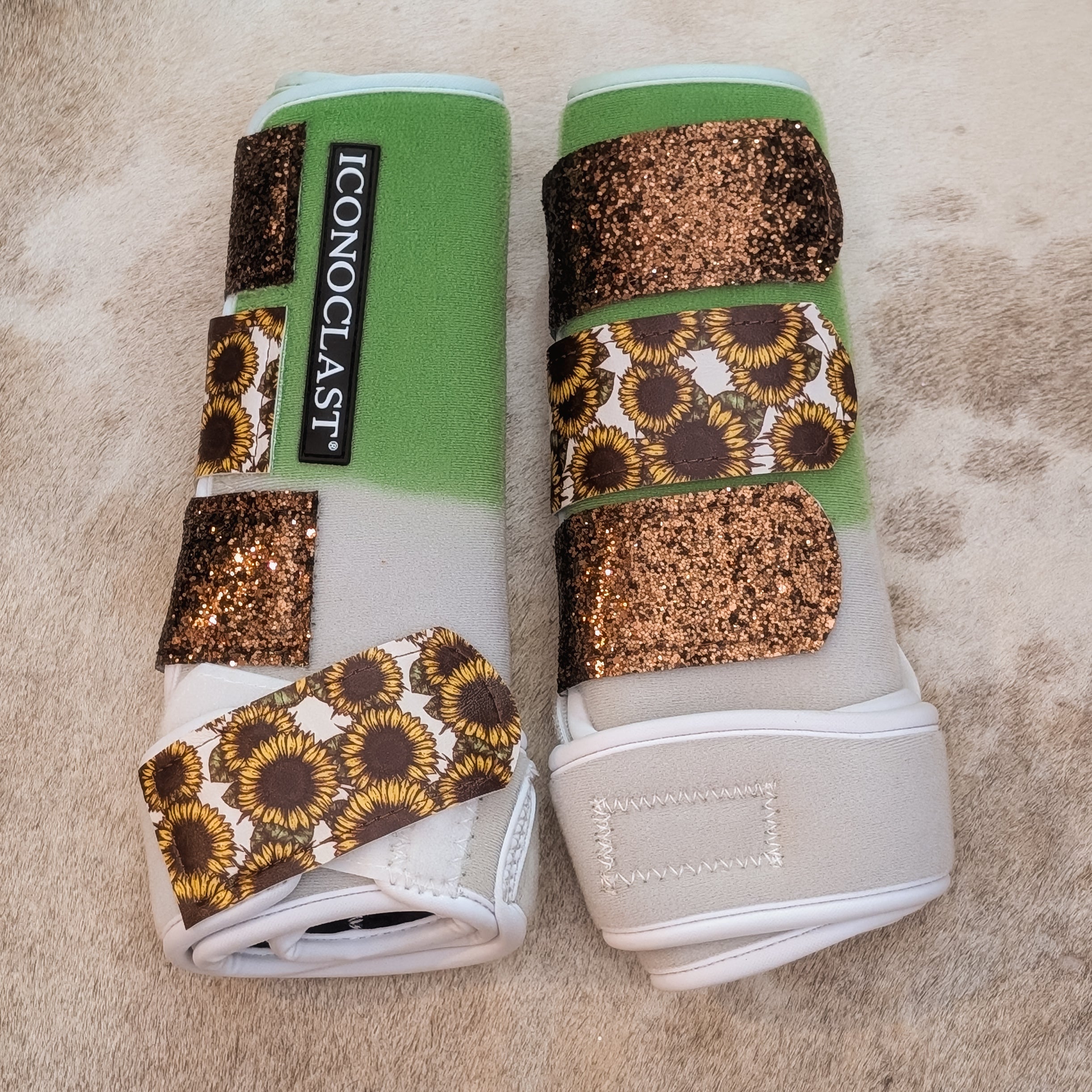 Large Lime Green Dip Dyed Iconoclast Fronts w/ Sunflower and Brown Glitter Straps