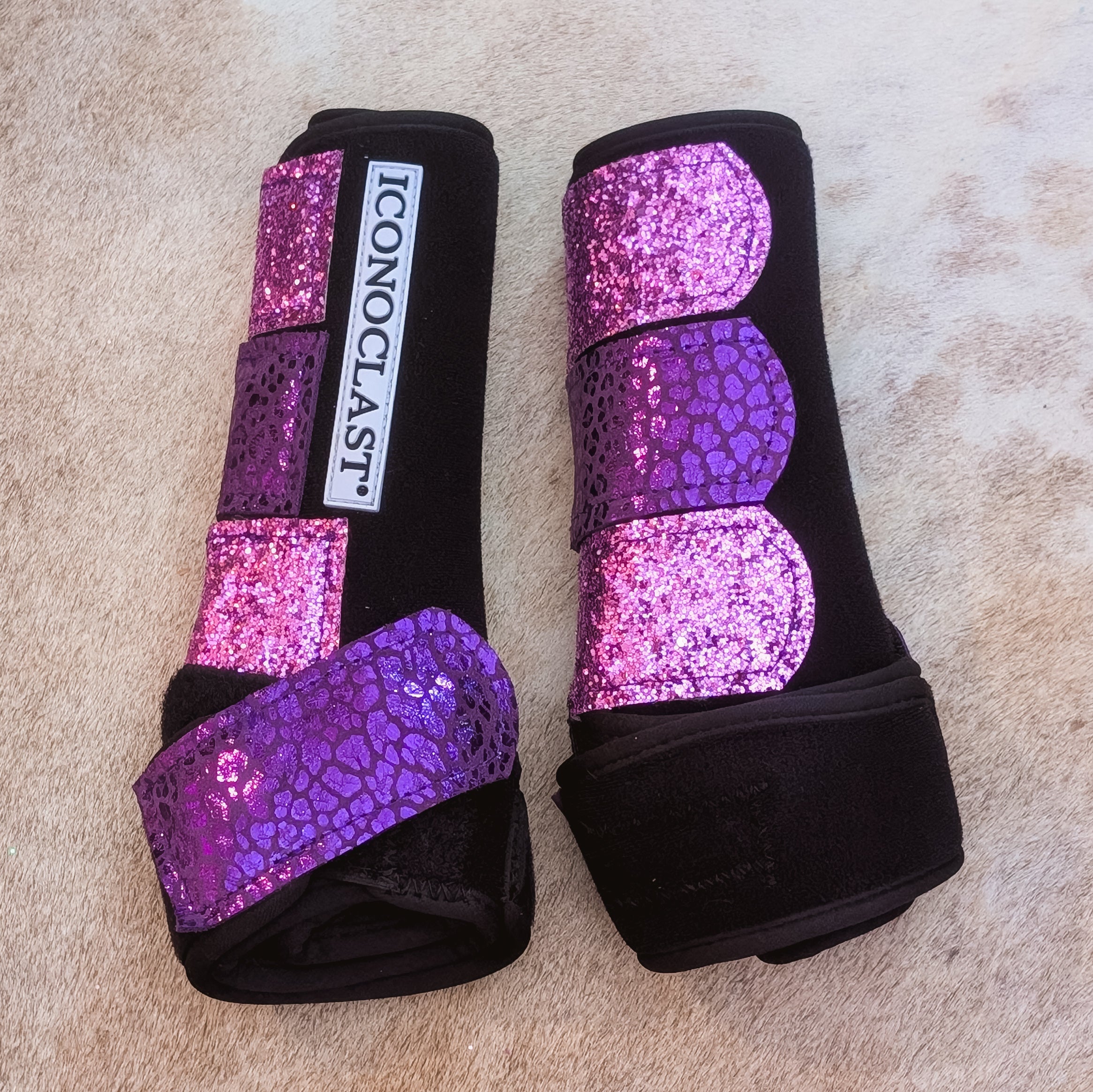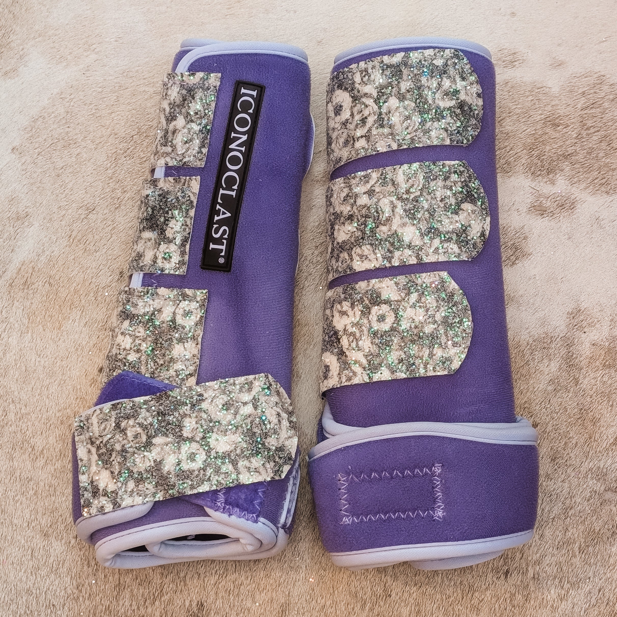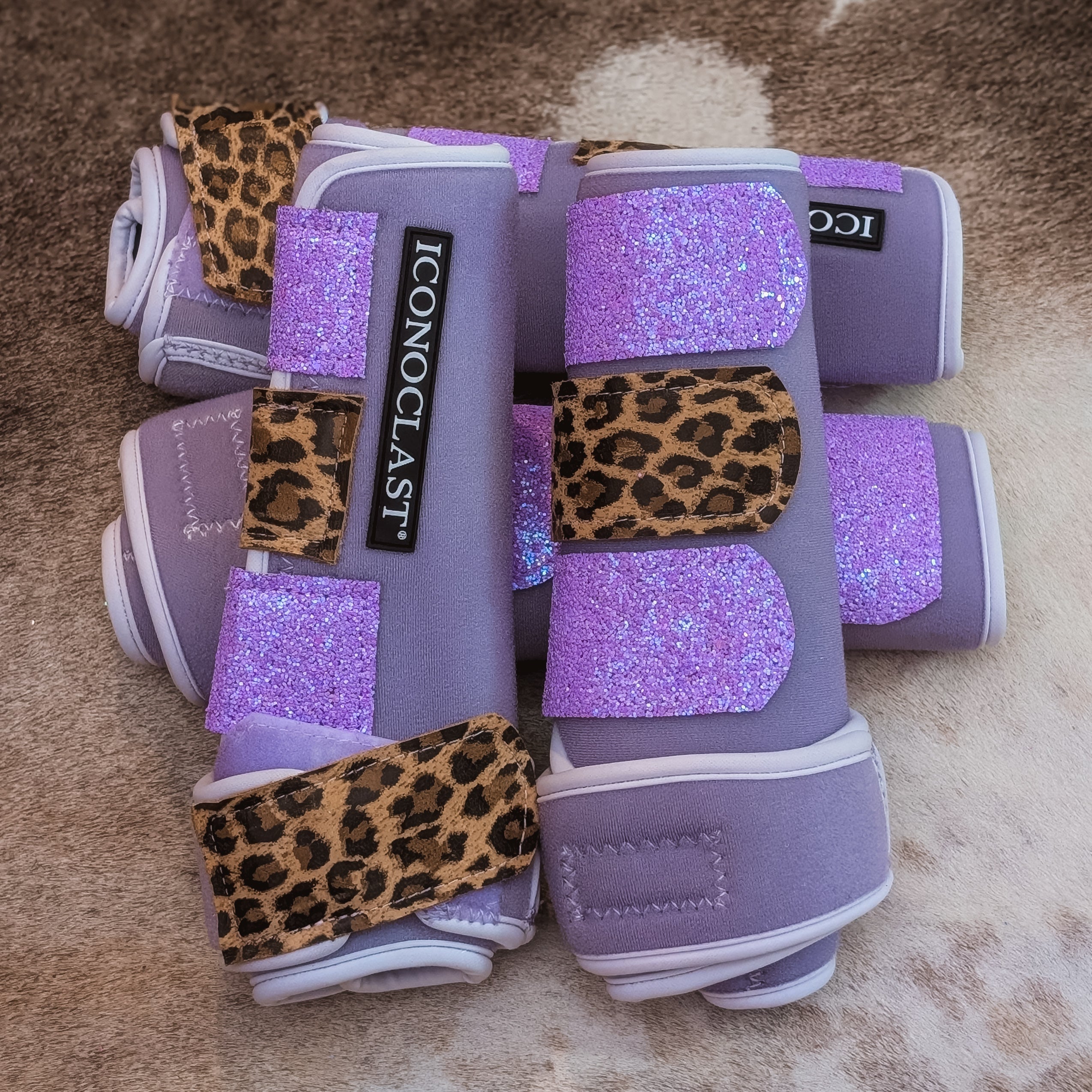 Medium Lavender Dyed Iconoclast Fronts & Hinds w/ Cheetah Leather and Lavender Glitter Straps