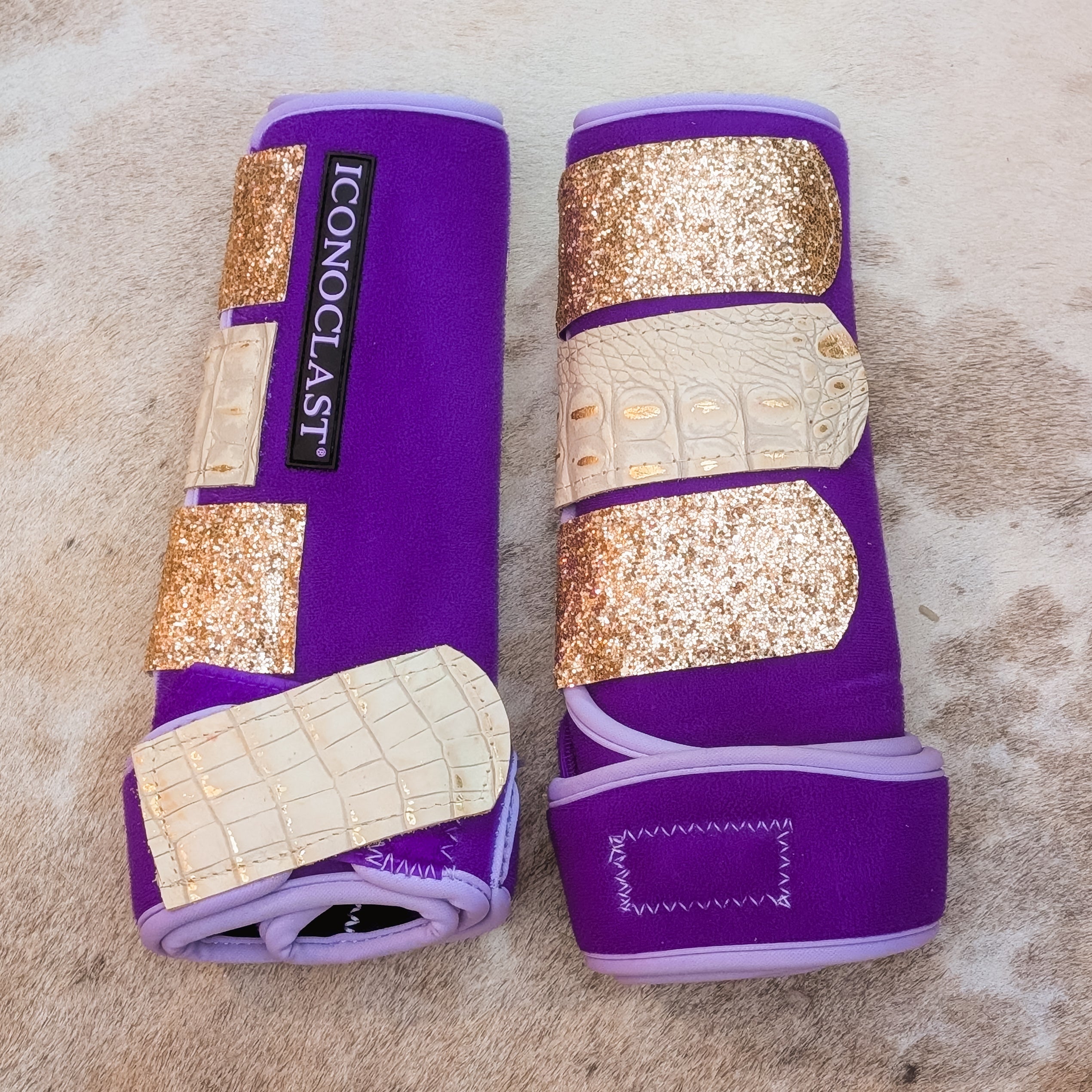 Large Purple Dyed Iconoclast Fronts w/ Gold Tipped Croc Leather and Champagne Glitter Straps