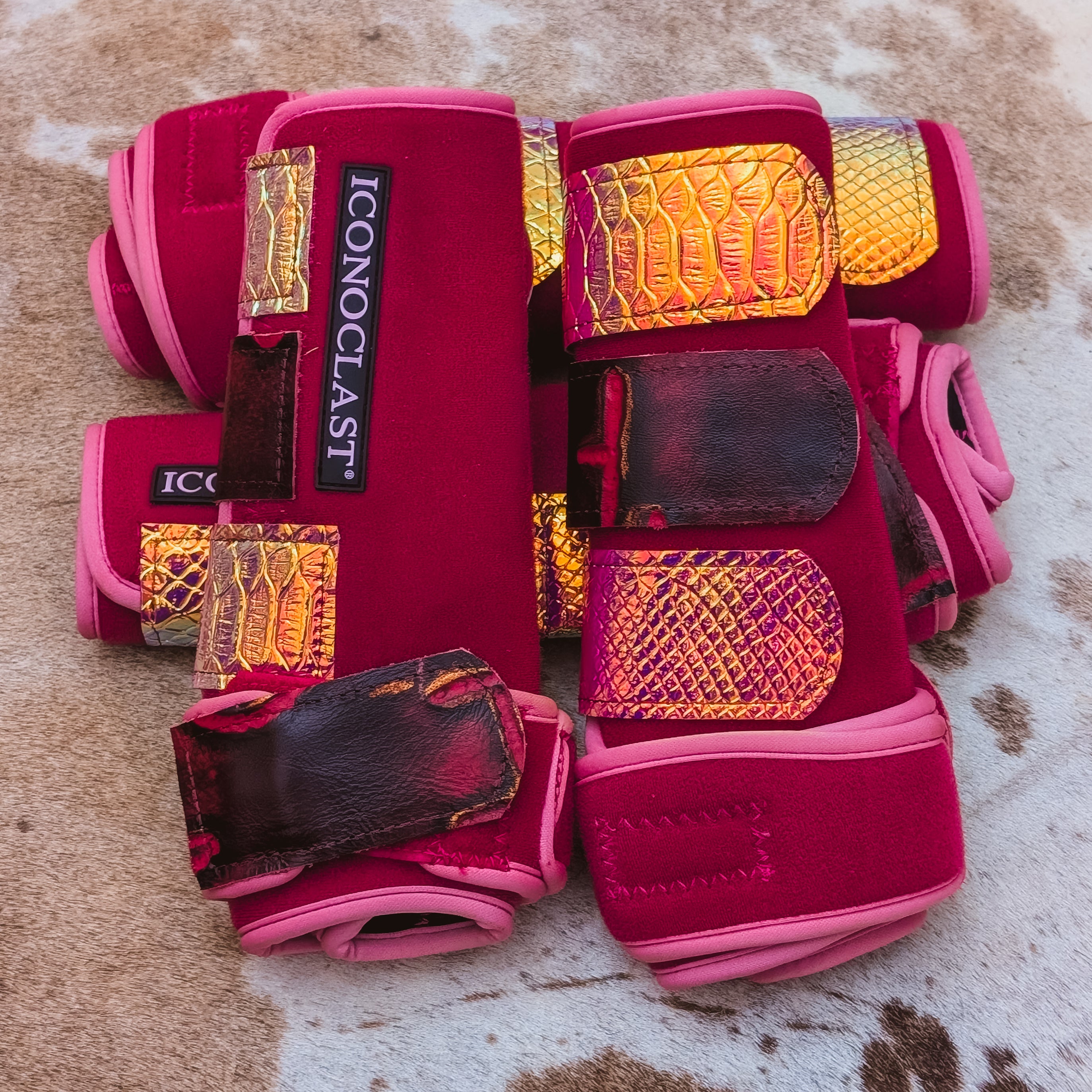 Large Wine Dyed Iconoclast Fronts & Hinds w/ Gold Holo Python and Wine Branded Leather