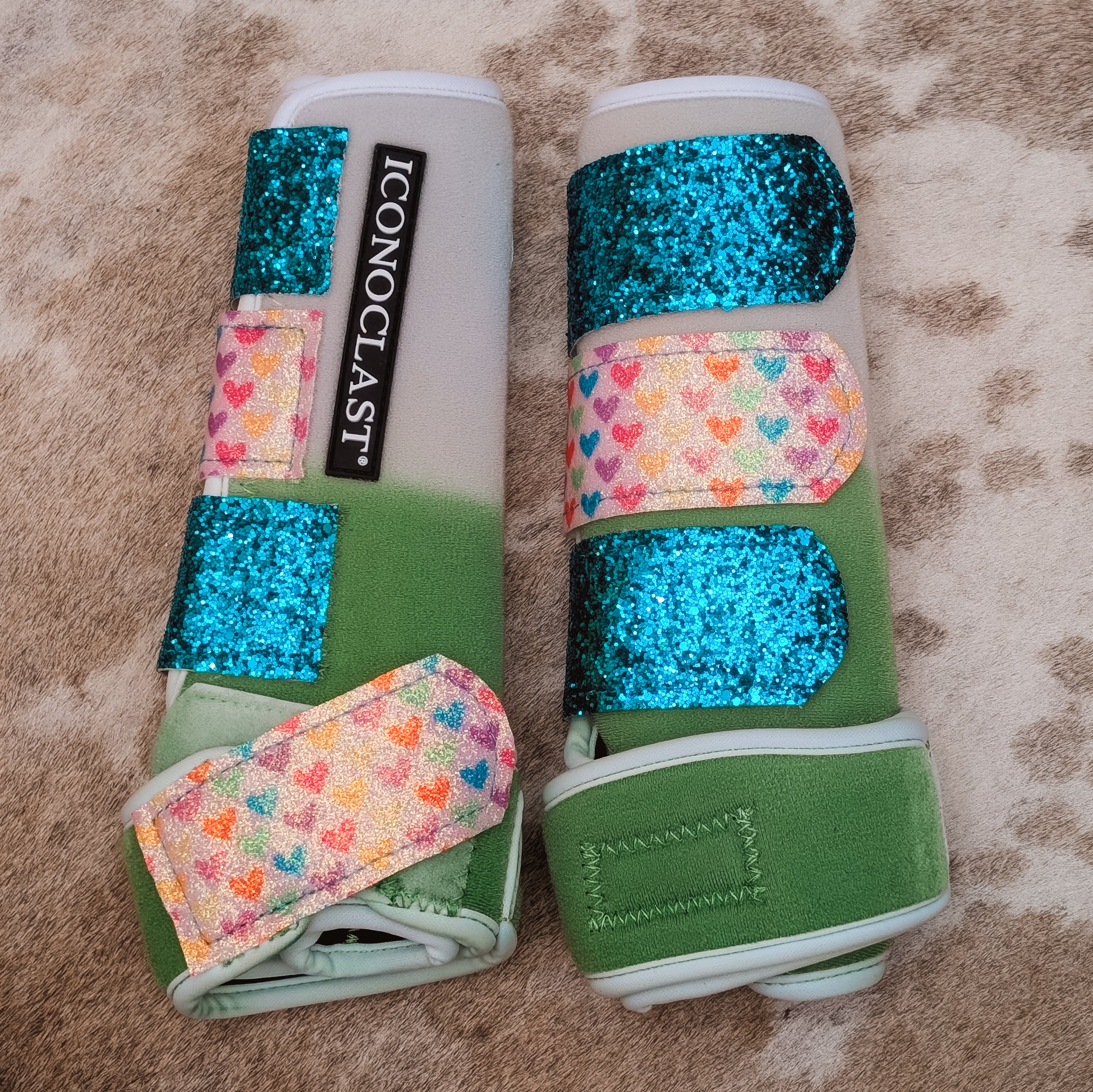 Medium Lime Green Dip Dyed Iconoclast Fronts w/ Sweetheart and Turquoise Glitter Straps
