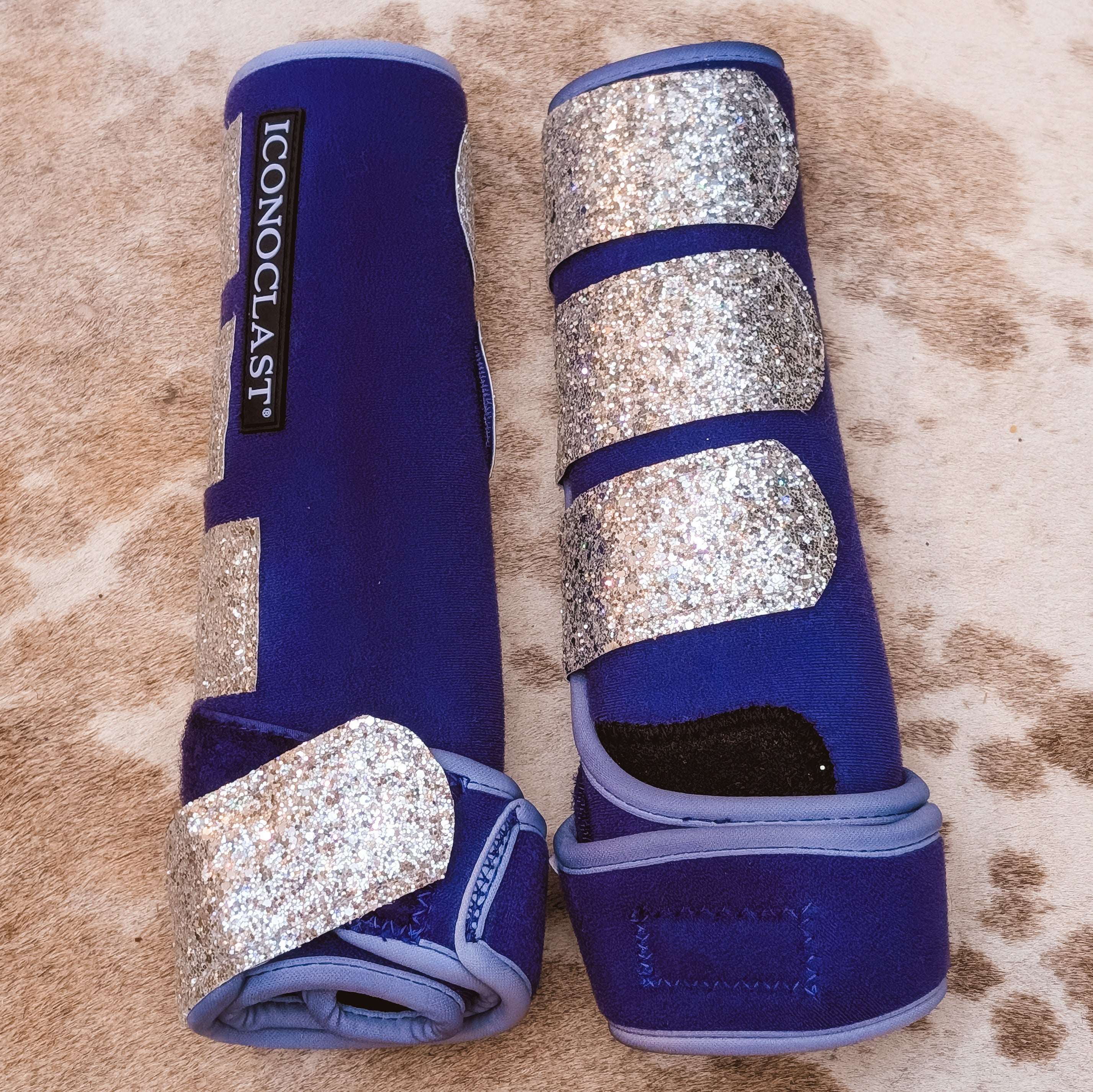 Medium Navy Dyed Iconoclast Hinds w/ Silver Glitter Straps