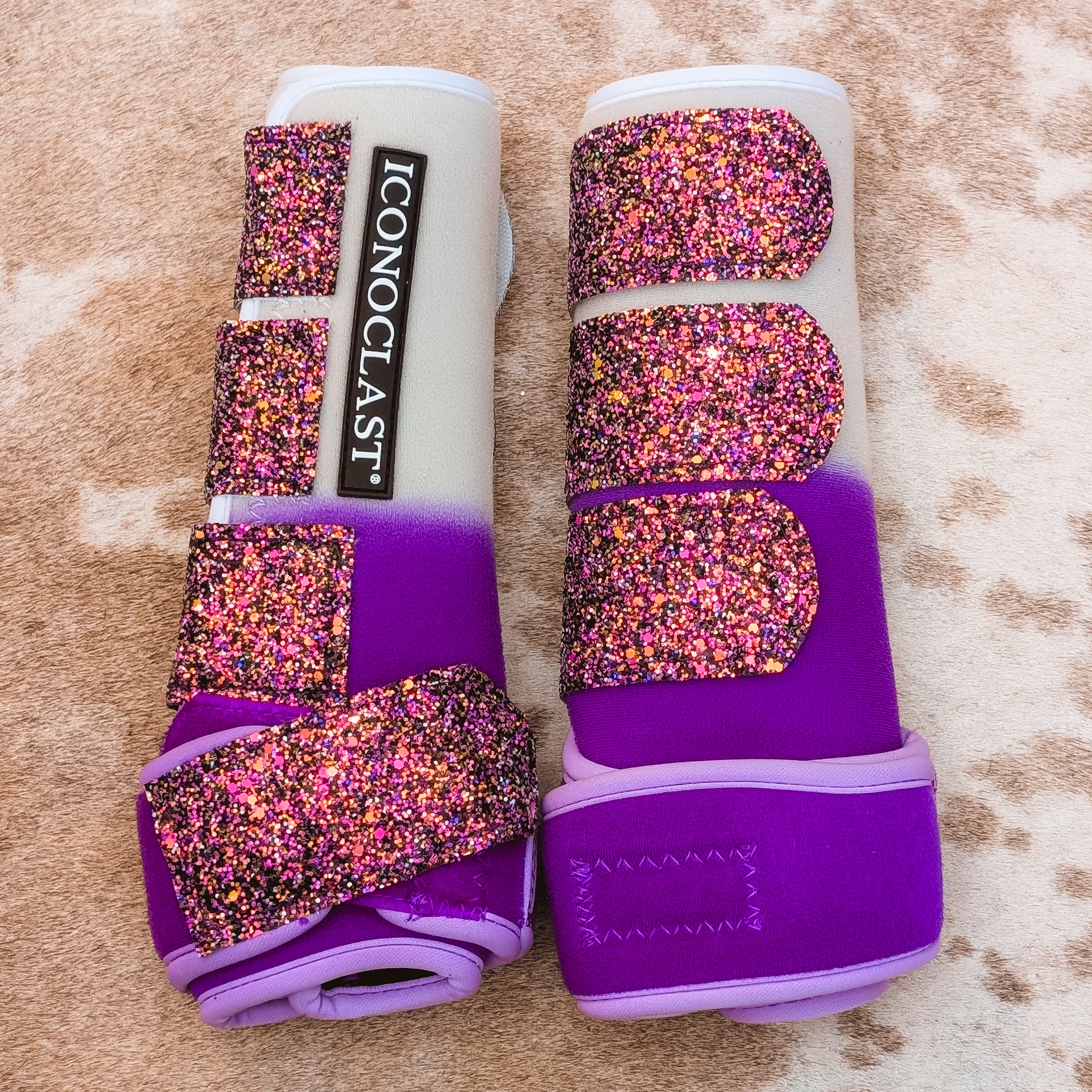 Large Purple Dyed Iconoclast Fronts w/ Purple Swirl and Hot Pink Glitter Straps