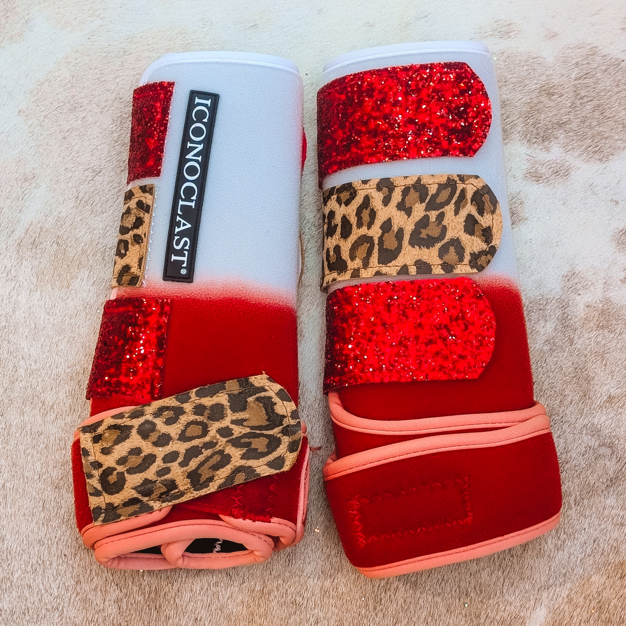 Large Red Dip Dyed Iconoclast Fronts w/ Cheetah Leather and Red Glitter Straps