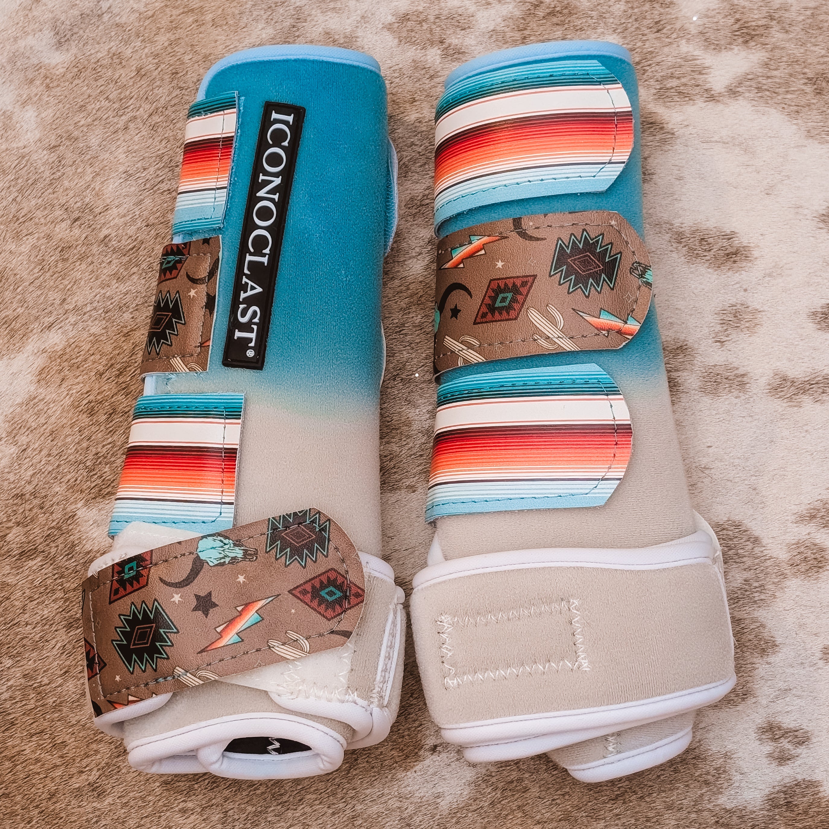Medium Turquoise Dip Dyed Iconoclast Fronts w/ Serape and Cowskull Straps