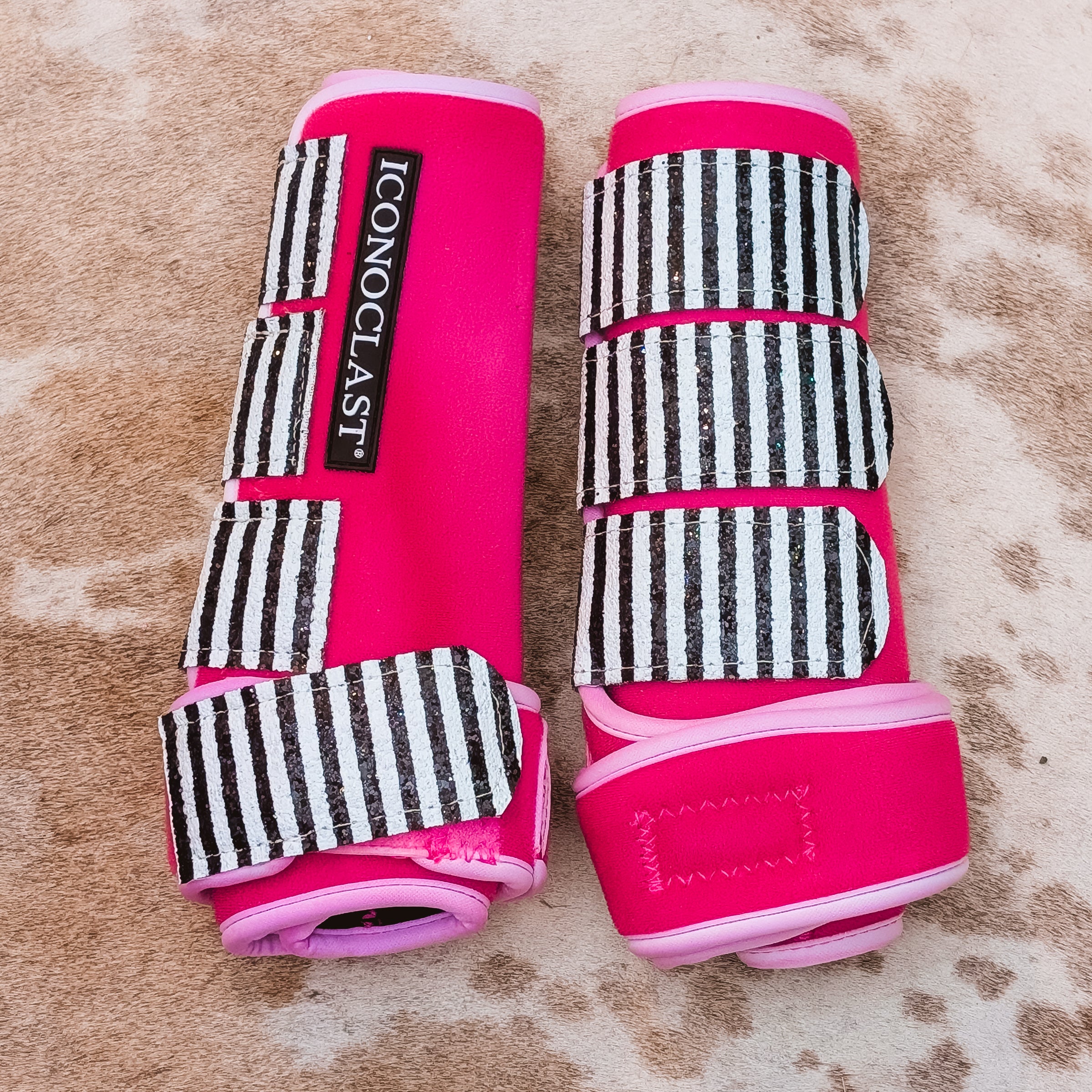 Large Pink Dyed Iconoclast Fronts w/ Black & White Striped Glitter Straps