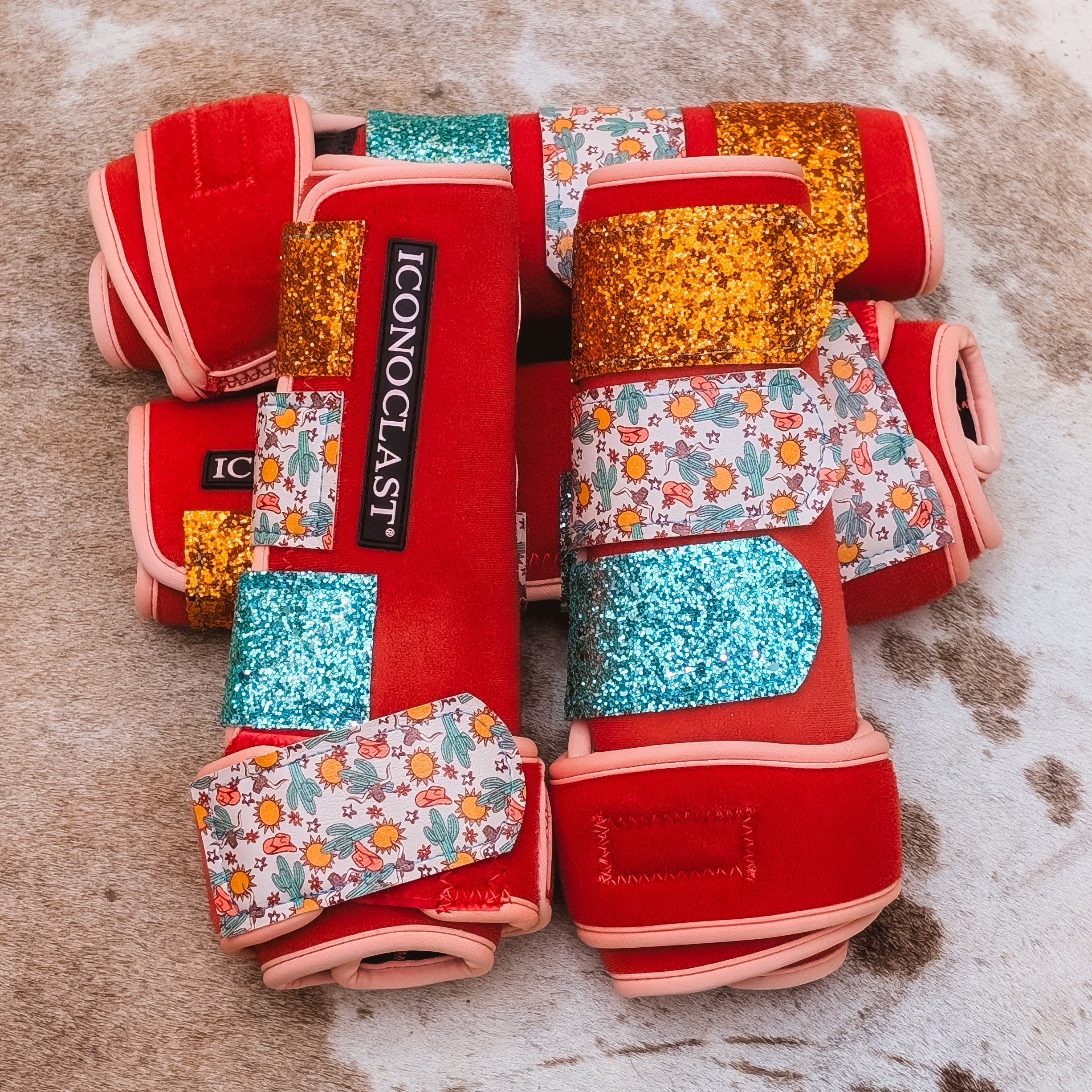 Medium Red Dyed Iconoclast Fronts & Hinds w/ Cactus Paradise and Orange & Mint Glitter Straps