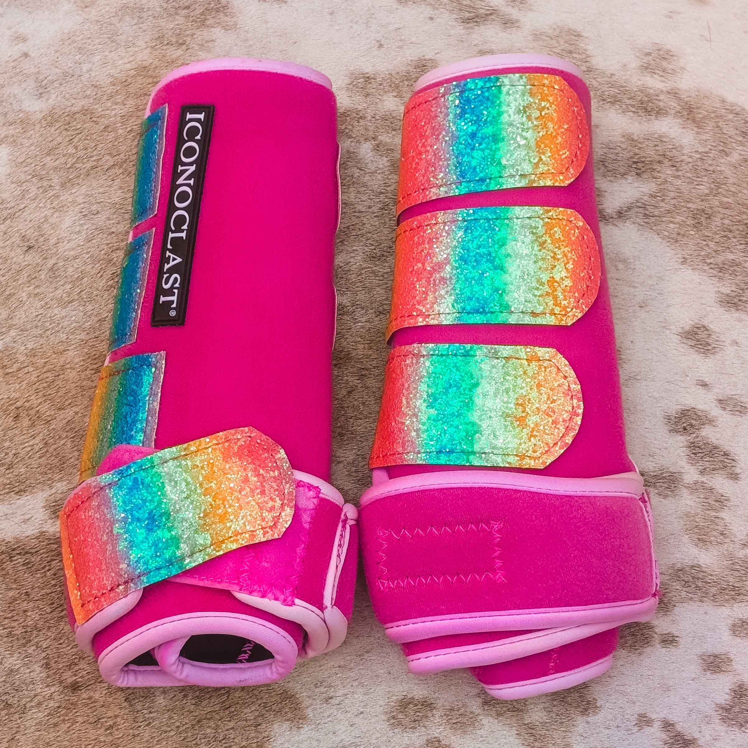 Large Pink Dyed Iconoclast Fronts w/ Rainbow Glitter Straps