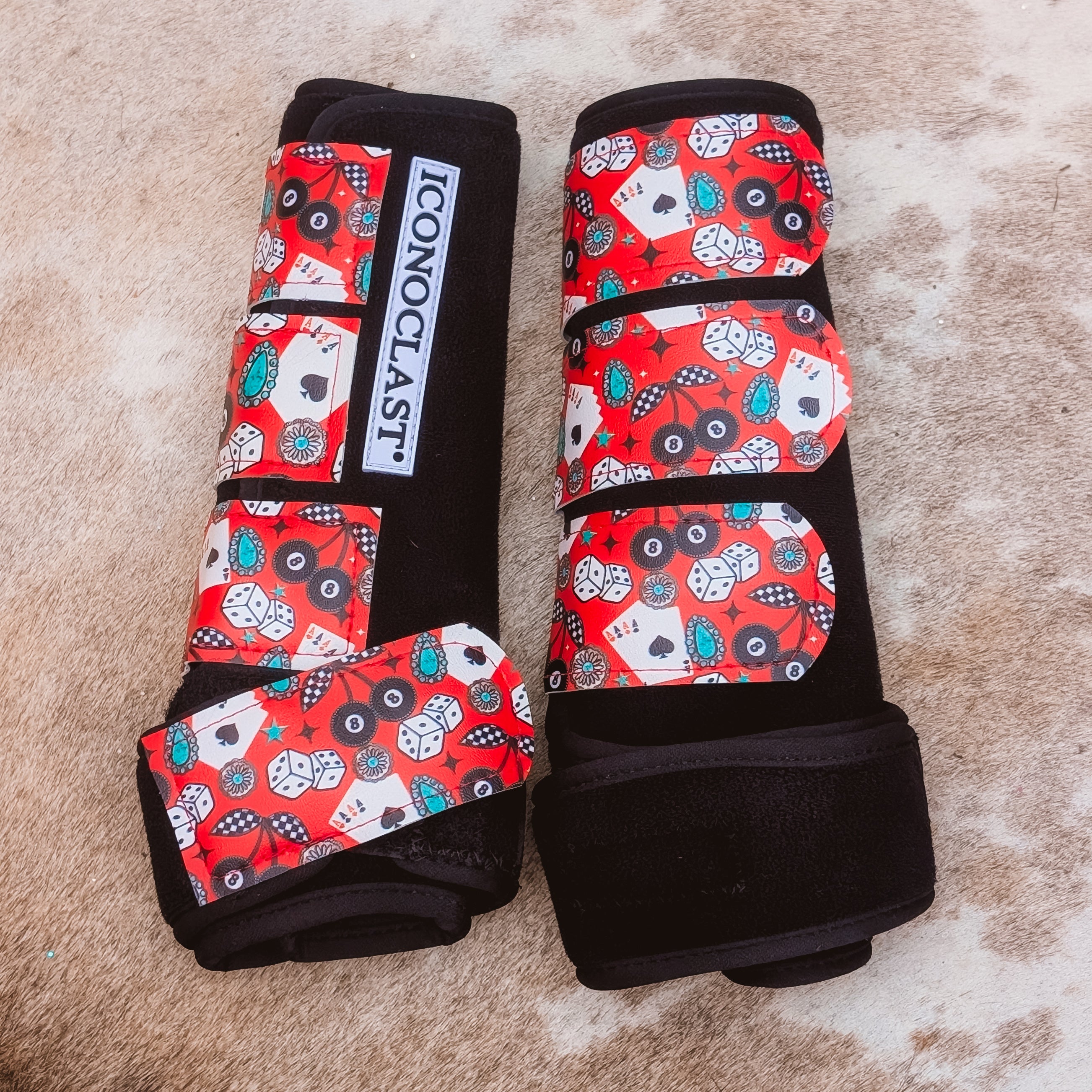 Large Black Iconoclast Fronts w/ High Stakes Gamble and Red Glitter Straps