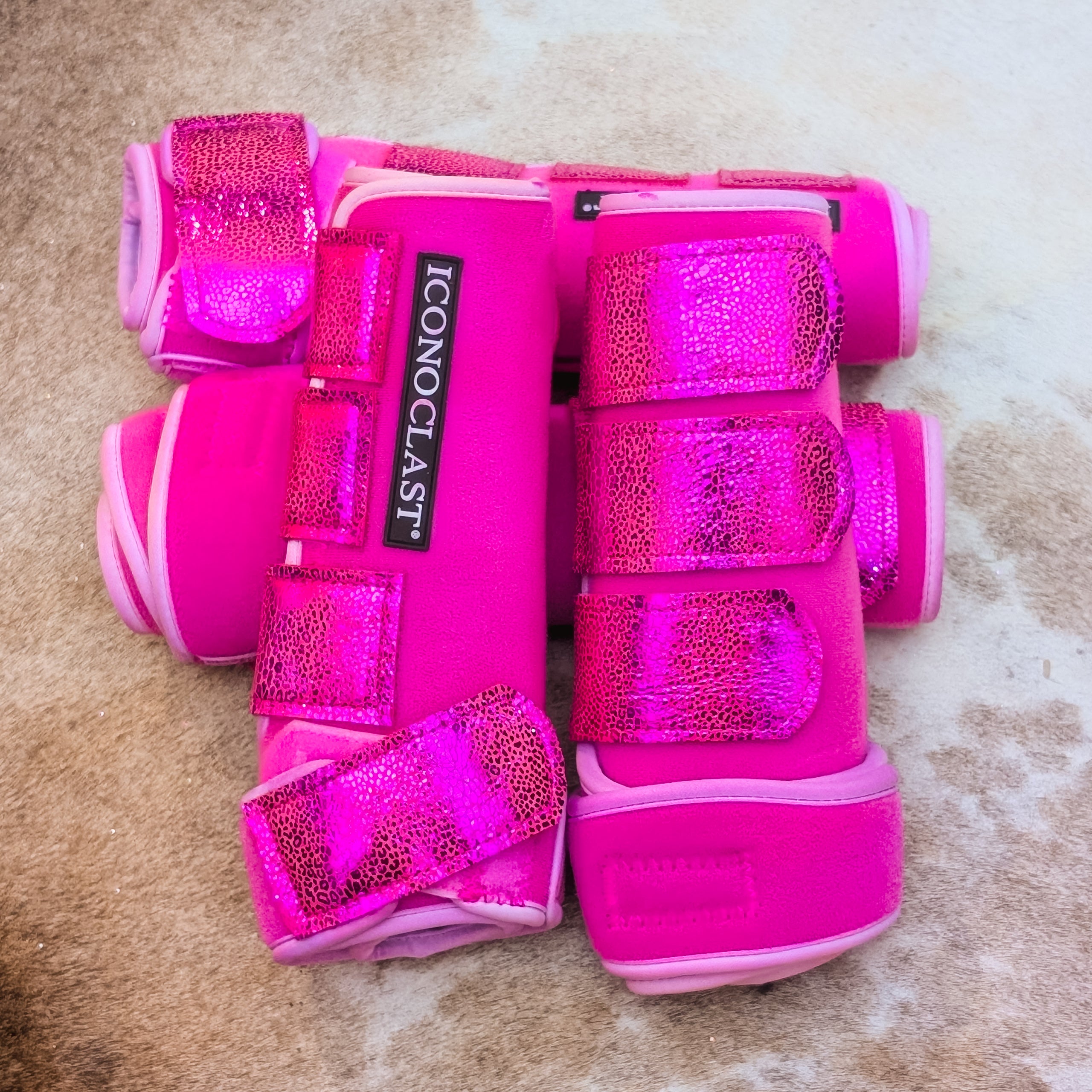 Large Pink Dyed Iconoclast Fronts & Hinds w/ Pink Holo Mini Cheetah Leather Straps
