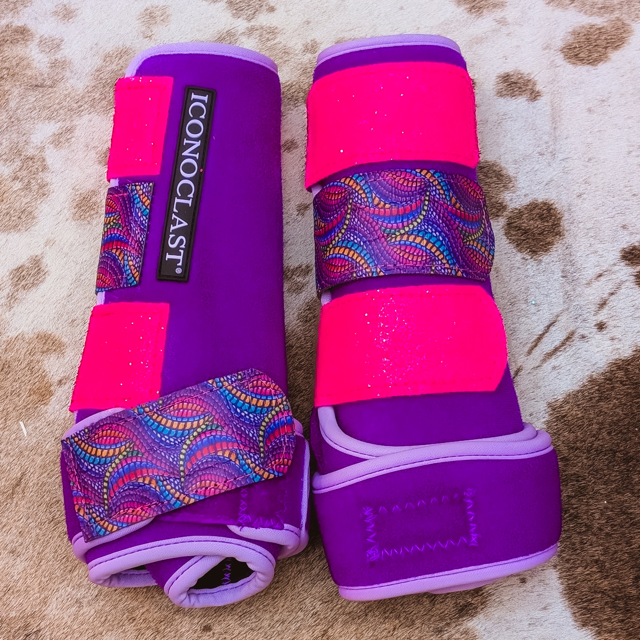 Large Purple Dyed Iconoclast Fronts w/ Purple Swirl and Hot Pink Glitter Straps