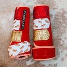 Medium Red Dyed Iconoclast Fronts w/ Hot Dogs and Red/Gold Glitter Straps