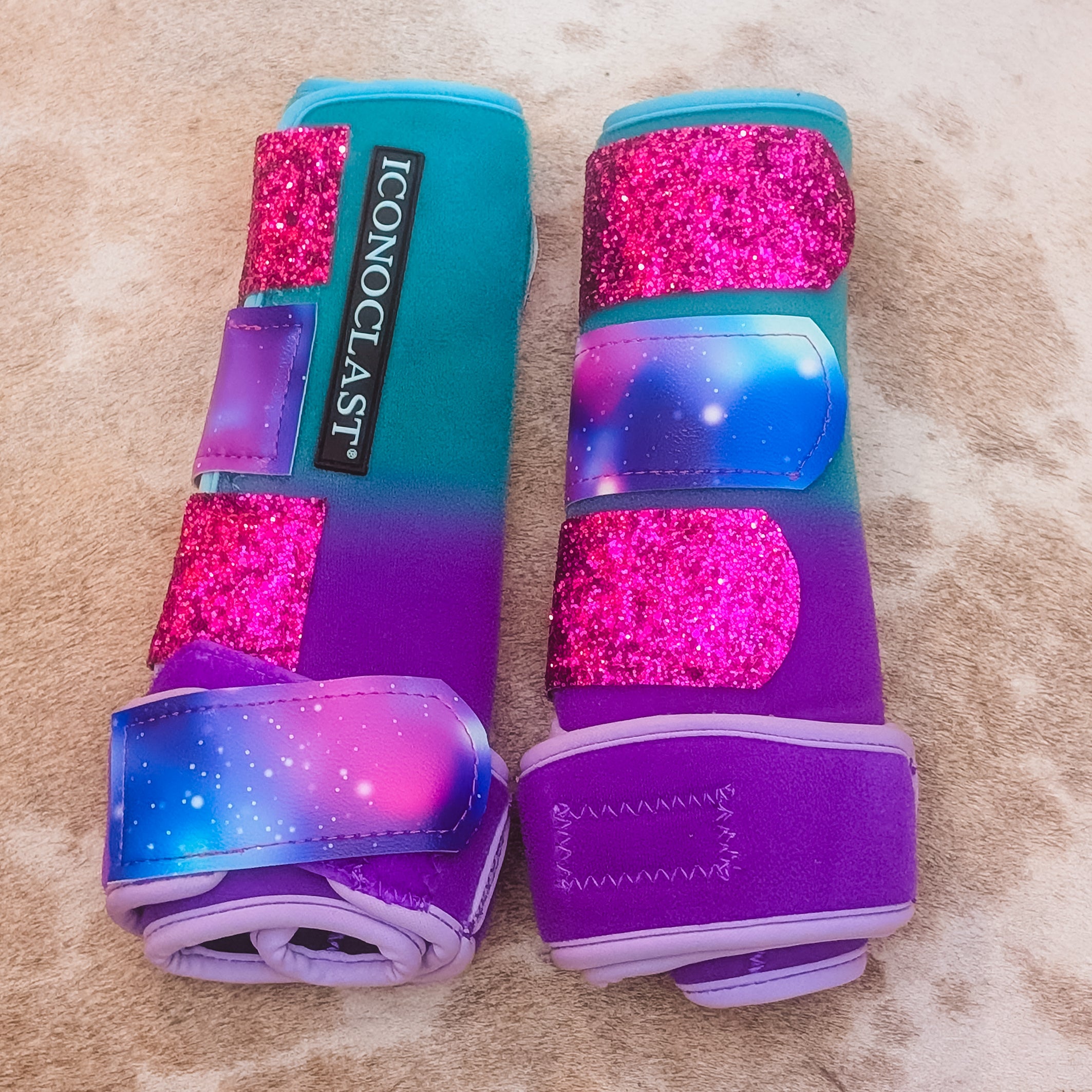 Medium Turquoise to Purple Double Dyed Iconoclast Fronts w/ Galaxy and Berry Glitter Straps