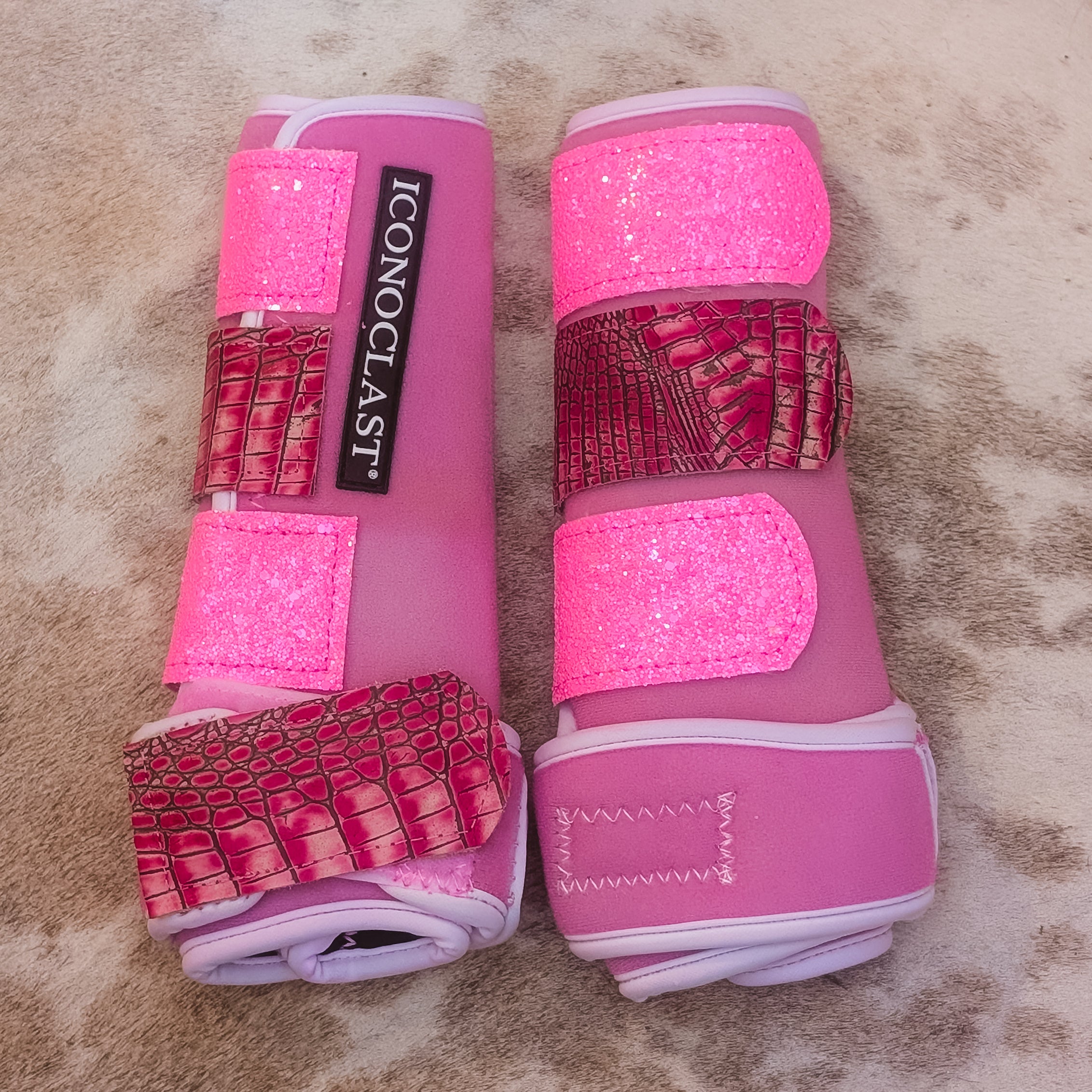 Medium Light Pink Dyed Iconoclast Fronts w/ Pink Croc Leather and Pink Glitter Straps