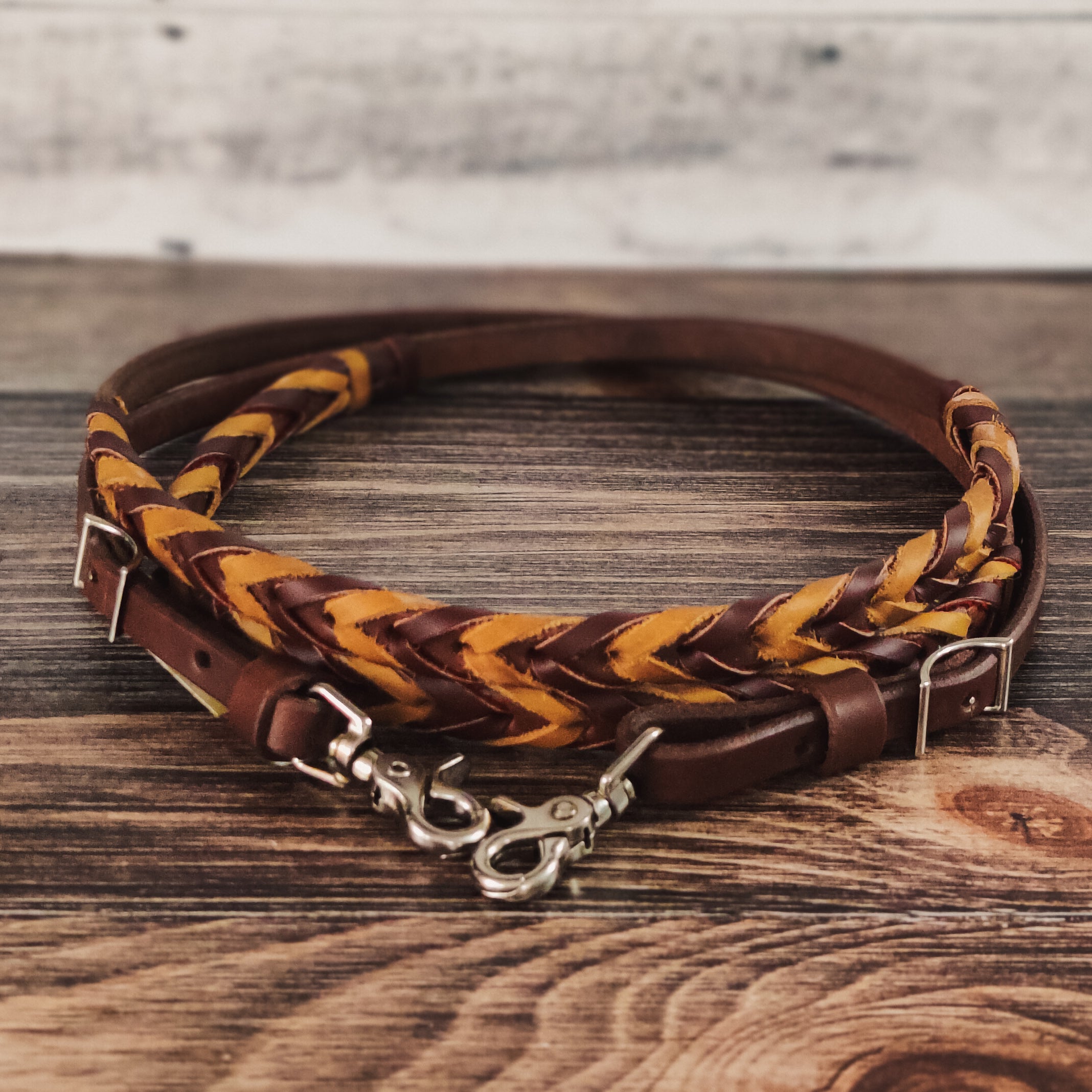 Complete your tack set with a touch of coordinated color using our exquisite leather reins. Expertly crafted in the USA from premium harness leather, these reins boast a remarkable supple feel and unmatched quality. Rest assured, our laced reins feature genuine leather lacing, providing superior durability and aesthetics. Additionally, the reins are equipped with convenient clips on the ends, allowing for effortless swapping between headstalls. Elevate your riding experience with these stunning leather reins that combine style, craftsmanship, and practicality.