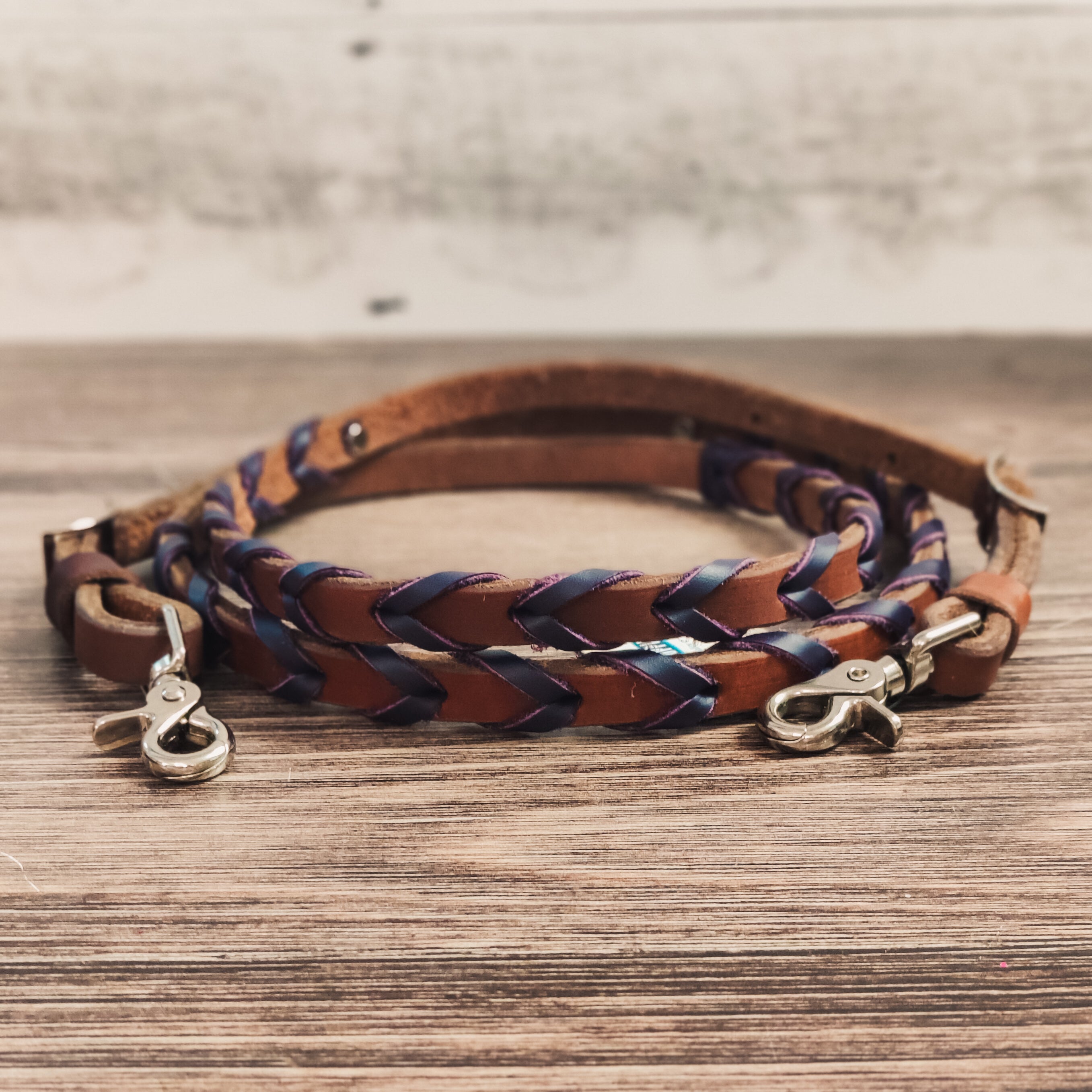 Complete your tack set with a touch of coordinated color using our exquisite leather reins. Expertly crafted in the USA from premium harness leather, these reins boast a remarkable supple feel and unmatched quality. Rest assured, our laced reins feature genuine leather lacing, providing superior durability and aesthetics. Additionally, the reins are equipped with convenient clips on the ends, allowing for effortless swapping between headstalls. Elevate your riding experience with these stunning leather reins that combine style, craftsmanship, and practicality.