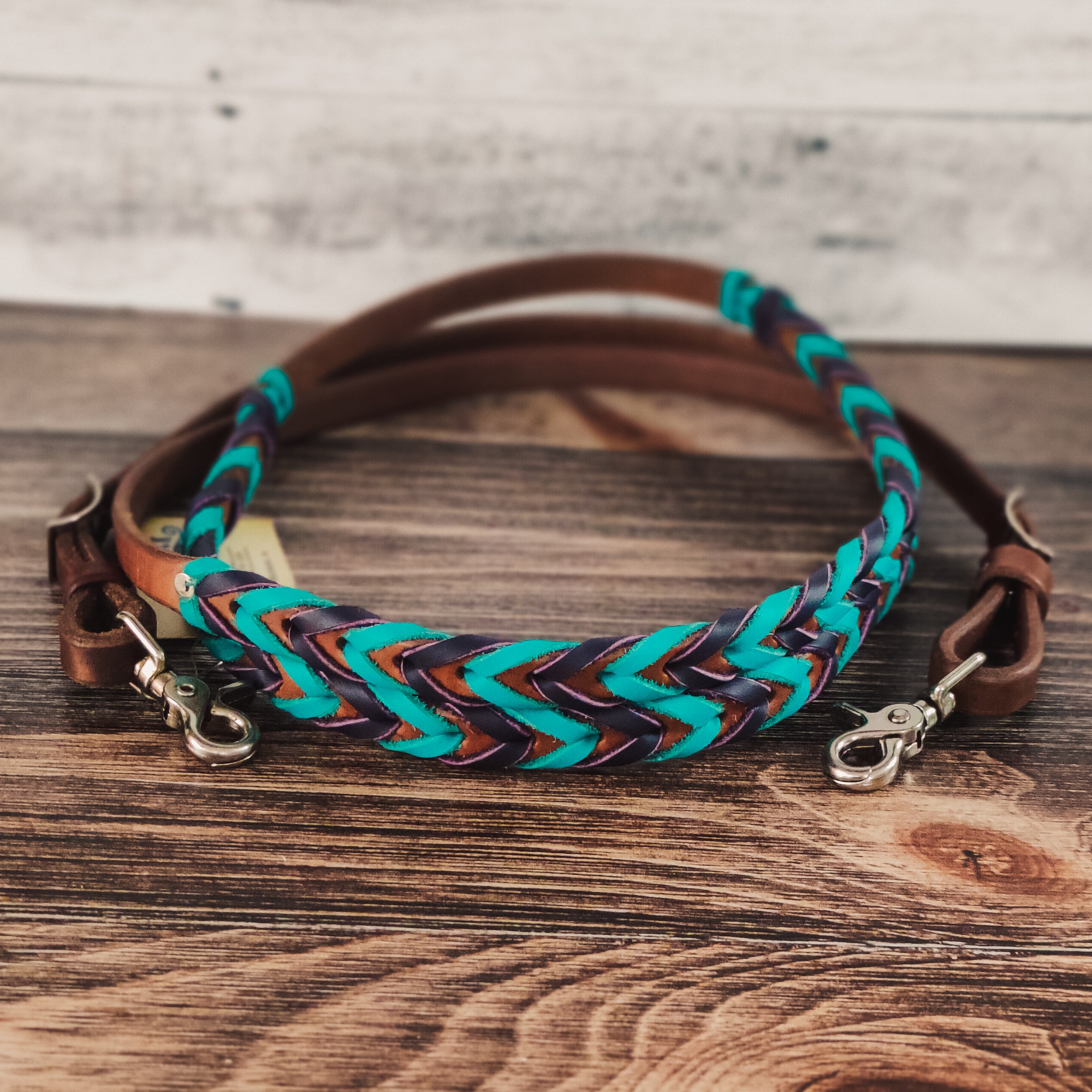 Complete your tack set with a touch of coordinated color using our exquisite leather reins. Expertly crafted in the USA from premium harness leather, these reins boast a remarkable supple feel and unmatched quality. Rest assured, our laced reins feature genuine leather lacing, providing superior durability and aesthetics. Additionally, the reins are equipped with convenient clips on the ends, allowing for effortless swapping between headstalls. Elevate your riding experience with these stunning leather reins that combine style, craftsmanship, and practicality.