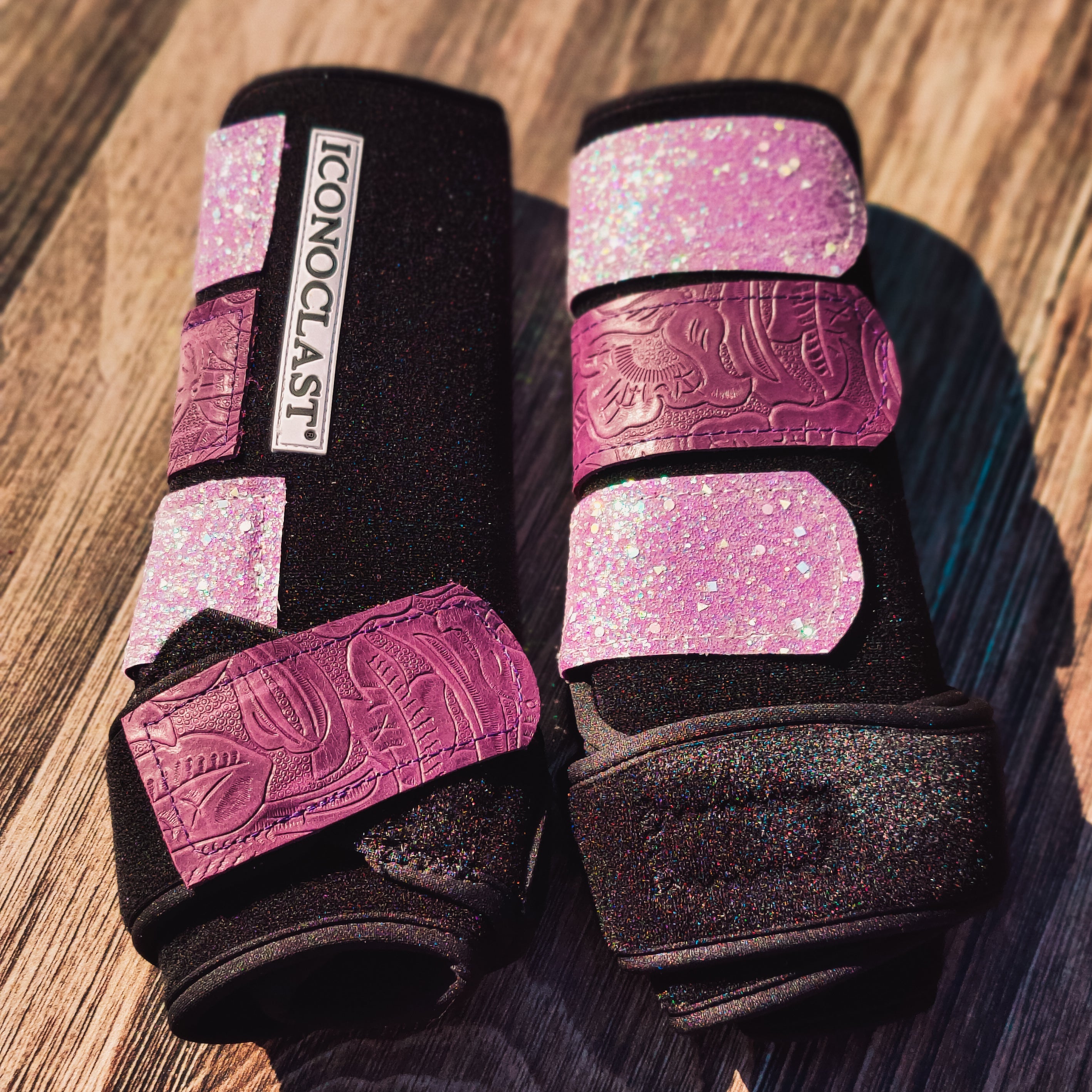 Pink Holographic Cheetah Custom Leather Strap Iconoclast Boots