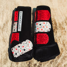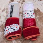 Why do we love faux leather straps? It's easy! They are simple to maintain and look good. They are glued and sewn for durability. These can handle whatever conditions you throw at them. Mud? No problem, just hose them off. Deep red sand? Again just hose them off ;) (be warned it may stain any white areas). Puddles of water? Wipe them off, hang them to dry, and move on with your day. Faux leather is our preference for gorgeous, durable boots that last. Craving some extra sparkle? Choose to alternate with your favorite color glitter leather so that your boots will shine under sunlight and arena lights.