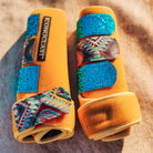 Why do we think leather boots are a must have? They scream classy cowgirl. All of our leather strap boots are glued and sewn for durability. While they do require some basic maintenance like all your other leather tack, they are more than worth it. Our gorgeous leather options are all embossed and either hand dyed or hand painted for a depth of design that you can only find in real leather. While we recommend not using these in muddy footing or puddles, if you do find yourself using them in these conditions hose them off, hang them to air dry, and condition them with leather conditioner.