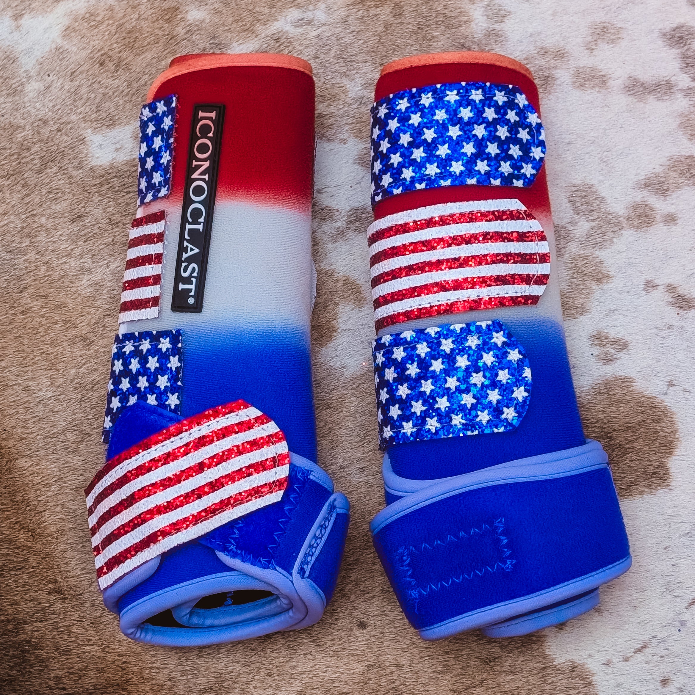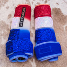 Show your love and pride for your country with these fabulous glittery three color red white and blue dyed boots!