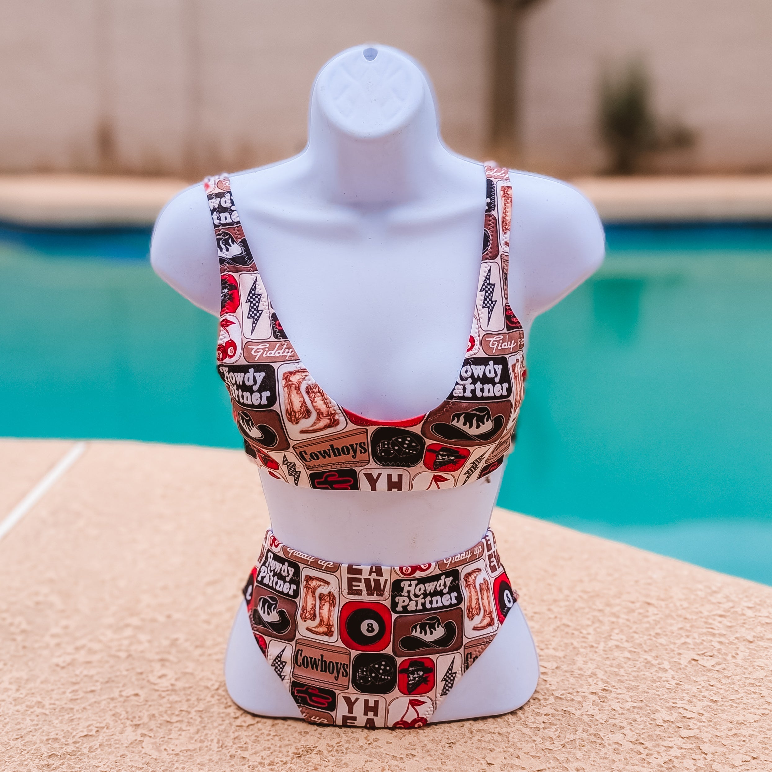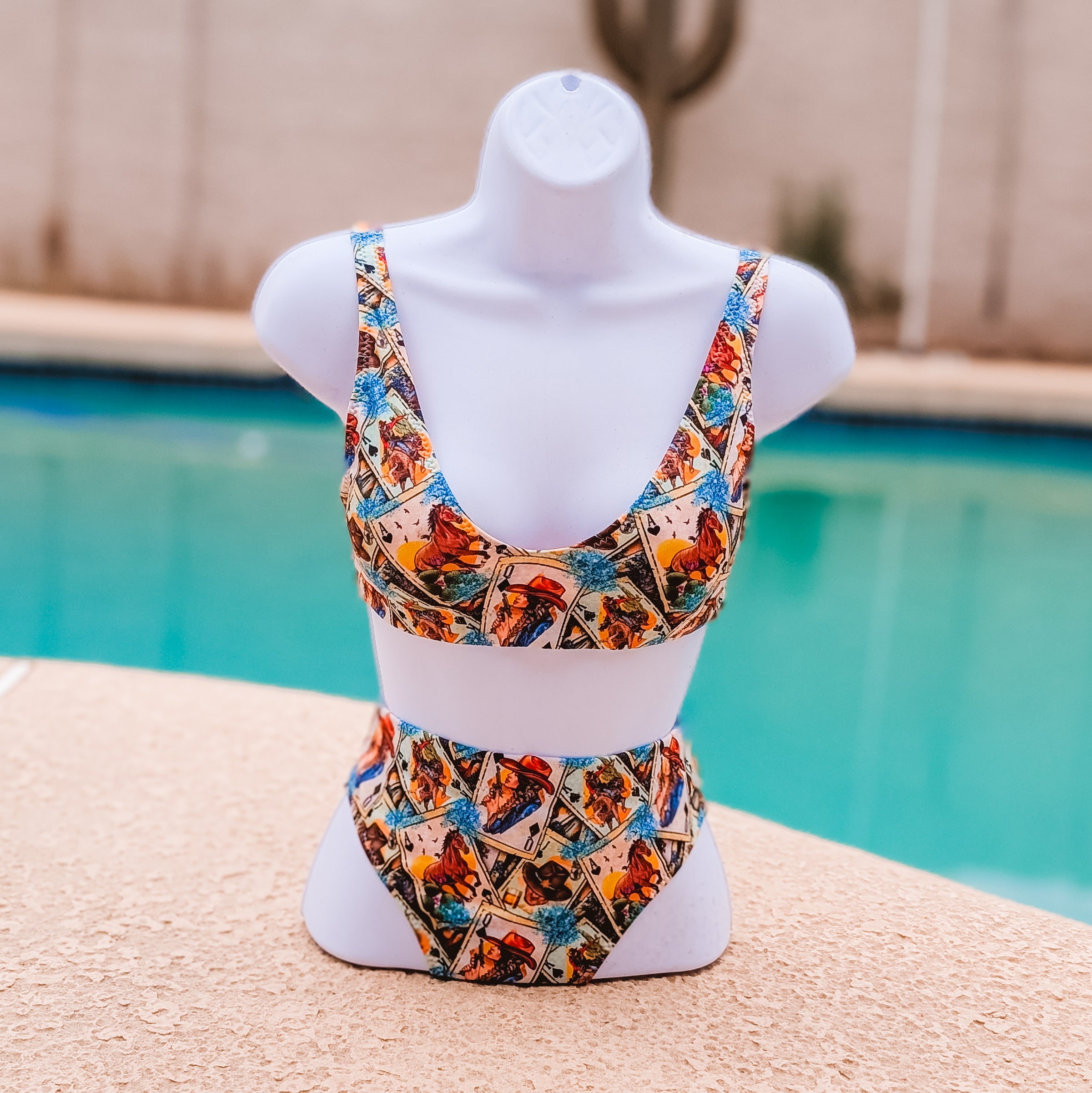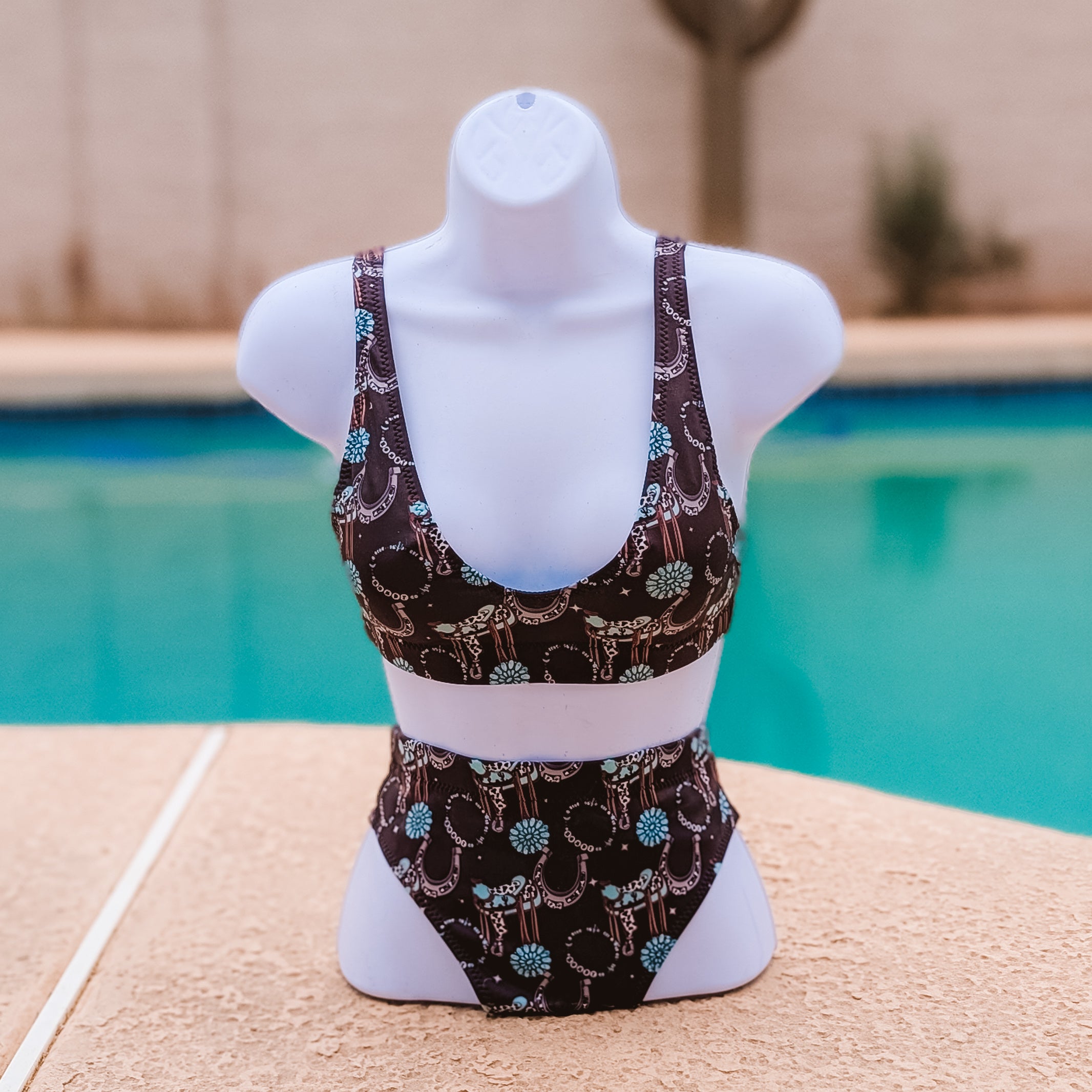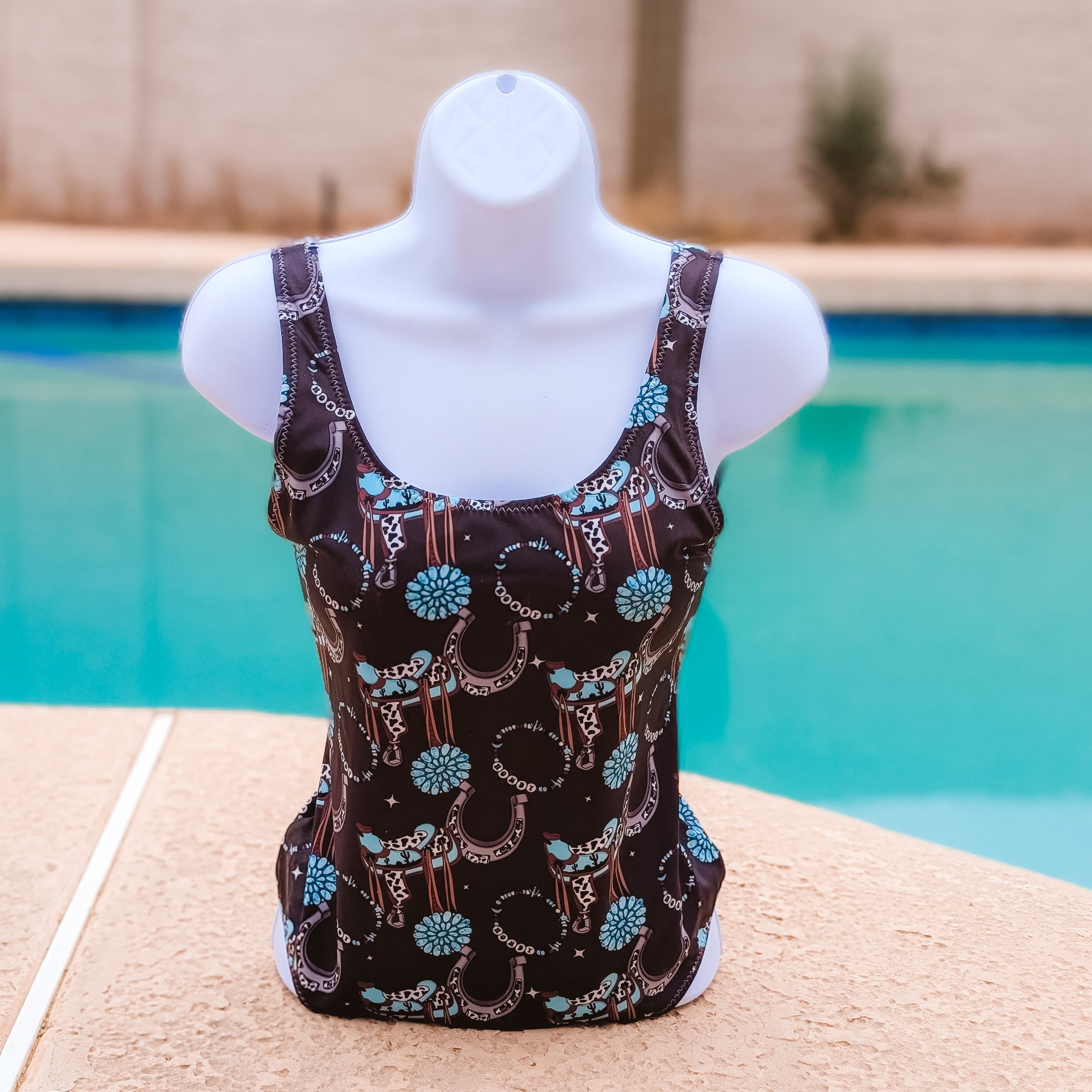 Time to trade the arena for the water and make a splash without losing your western style. Our gorgeous swimsuits are comfy, high quality, and made for the cowgirl who wants to look good from the pool to the lake.
