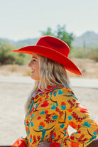 Let your style shine with this eye-catching cowboy hat! With its bright red hue, you'll have all eyes on you. It's the red lipstick of hats.