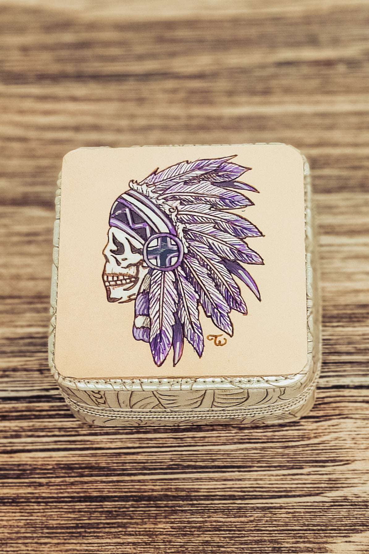 Fit for a country queen! These adorable little jewelry travel boxes have been adorned with unique, hand painted leather toppers for a little extra flair š.