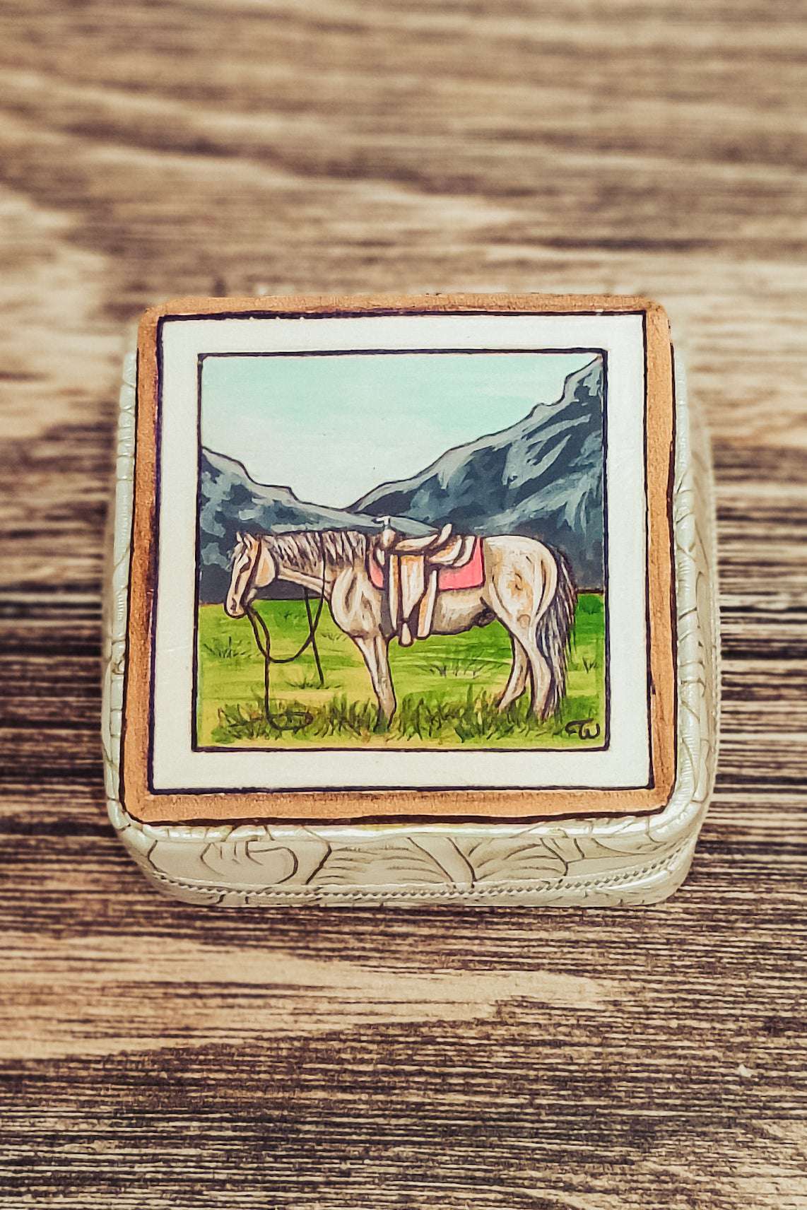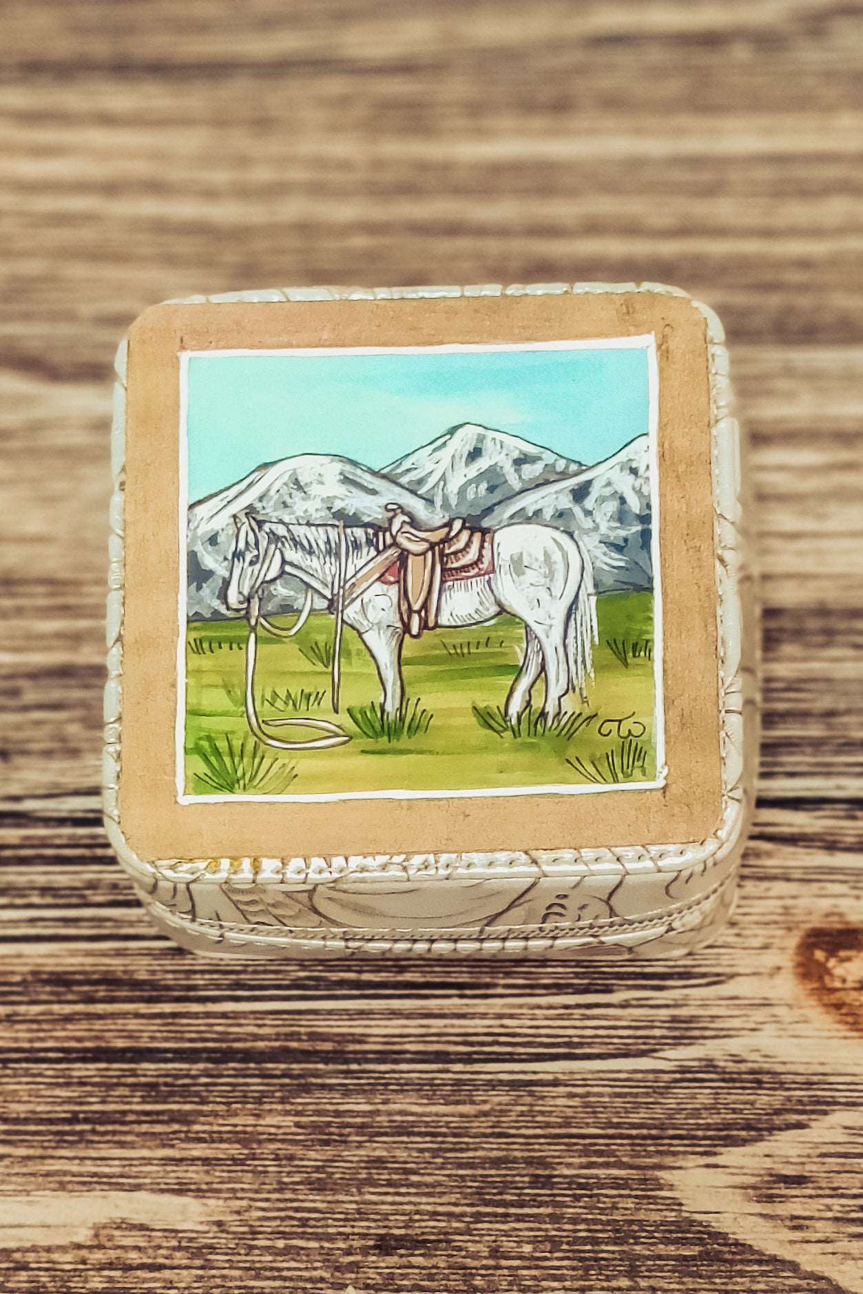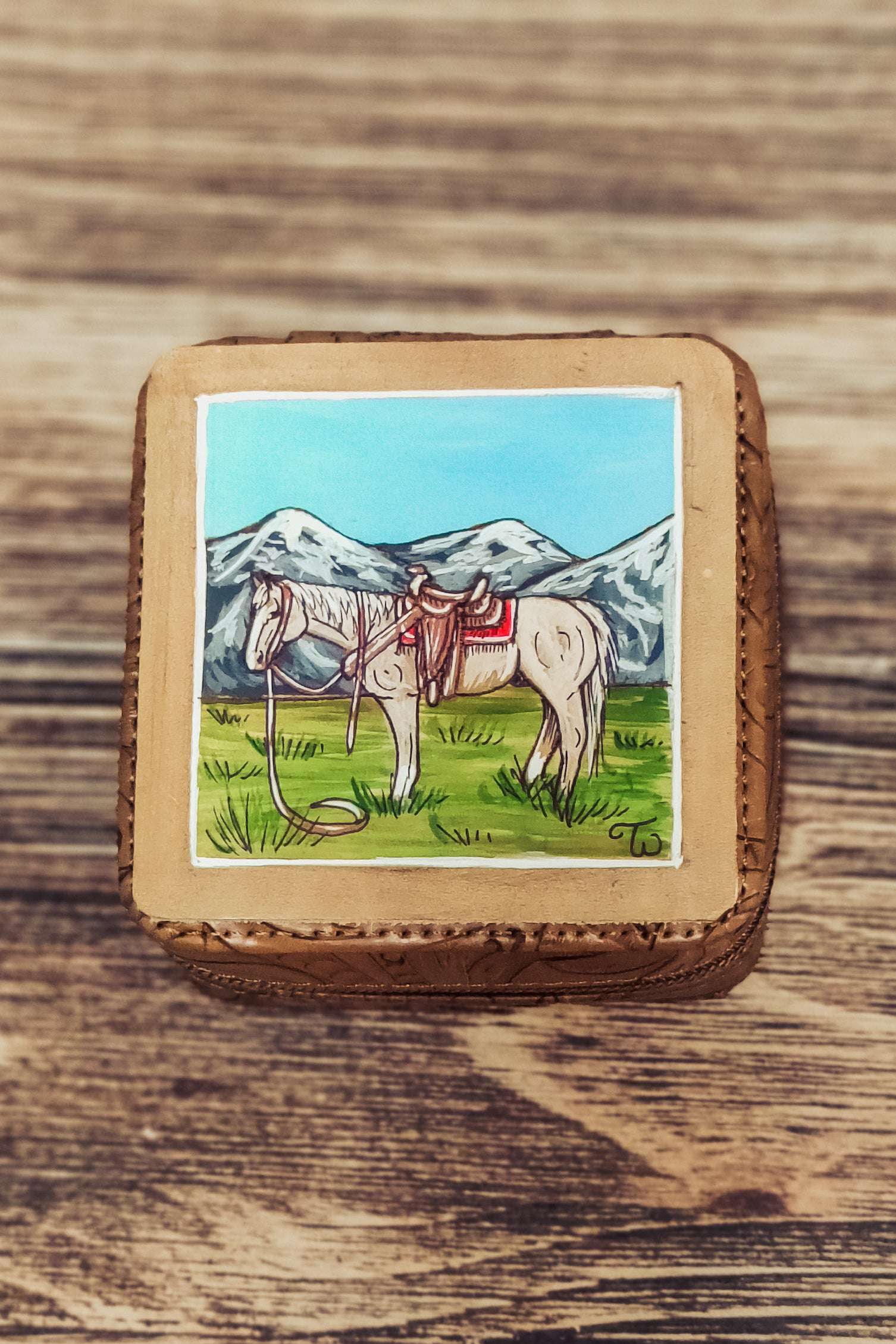 Fit for a country queen! These adorable little jewelry travel boxes have been adorned with unique, hand painted leather toppers for a little extra flair π.